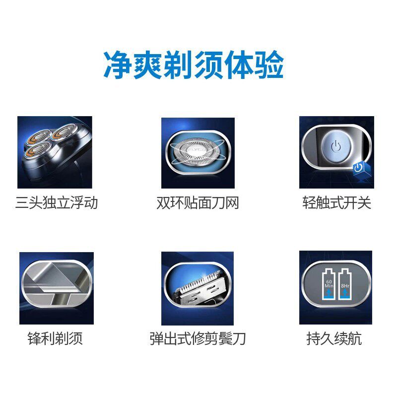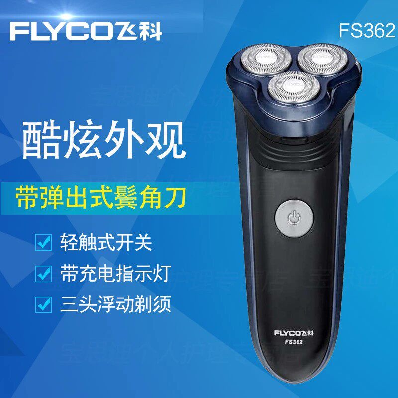 [ 飞科(FLYCO)电动剃须刀 FS362 三刀头 充电式刮胡刀 带弹出式鬓角刀 男士 胡须刀 刀头水洗 ]