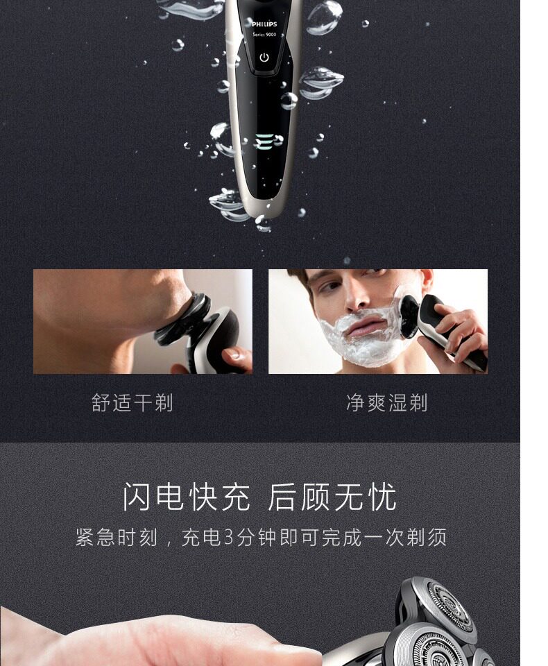 Филипс мужской электрический меч, промывание водой для всего тела сухой мокрой двойной бритва Ebek Scrape S9041/12