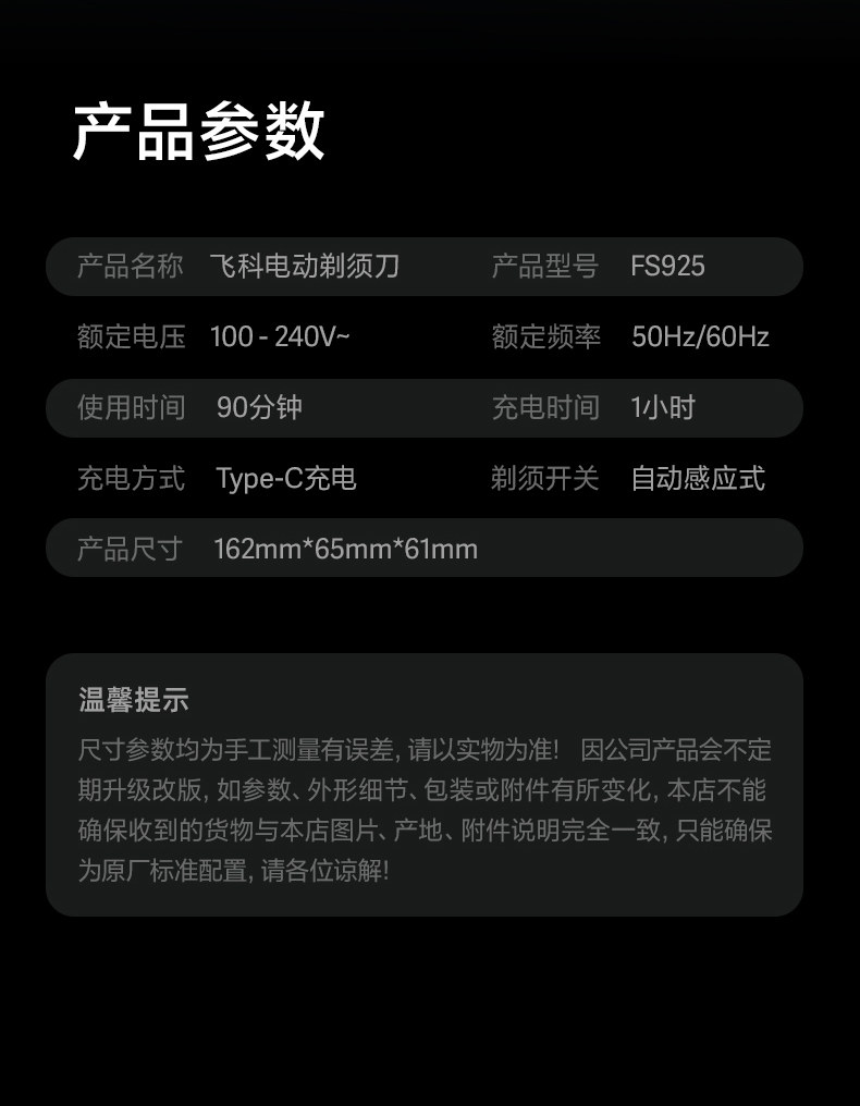 Flyco/飞科 Интеллектуальный индукционный электрический бритье нож для корпуса промыта в течение 1 часа быстрого зарядного скребка FS925