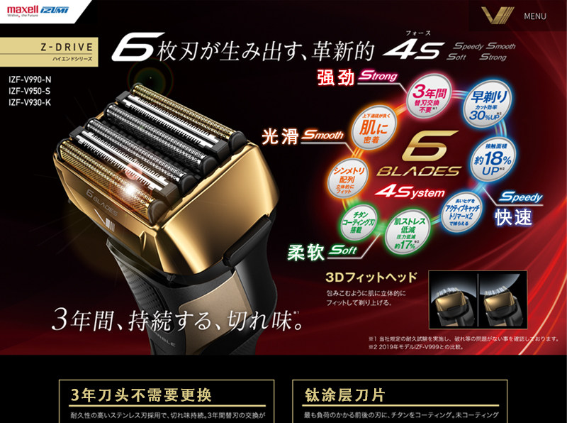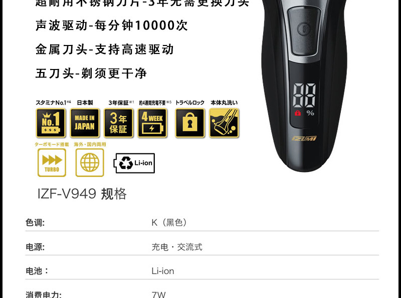 Япония Izumi Spring Premium Men's Men's Plus Plusal Shaver IZF-V990/V950V949/V939