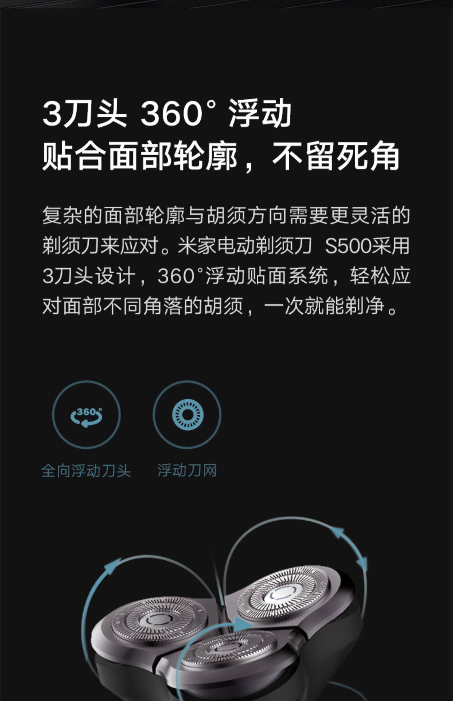 Xiaomi Electric Shaver S500 Мужской функциональный портативный портативный скребок для промывки воды с быстрого заряженной бритой нож 847