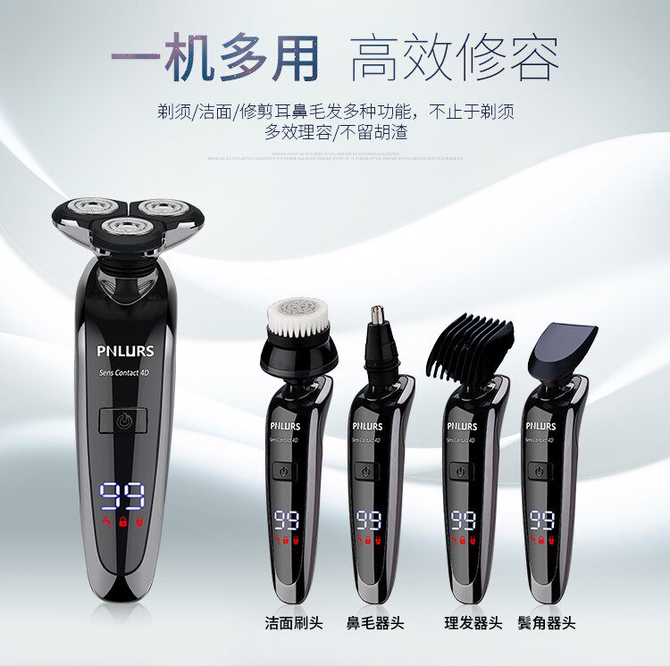 - Цифровой дисплей + режущая головка + щетка для чистки лица + машинка для стрижки волос + триммер для волос в носу