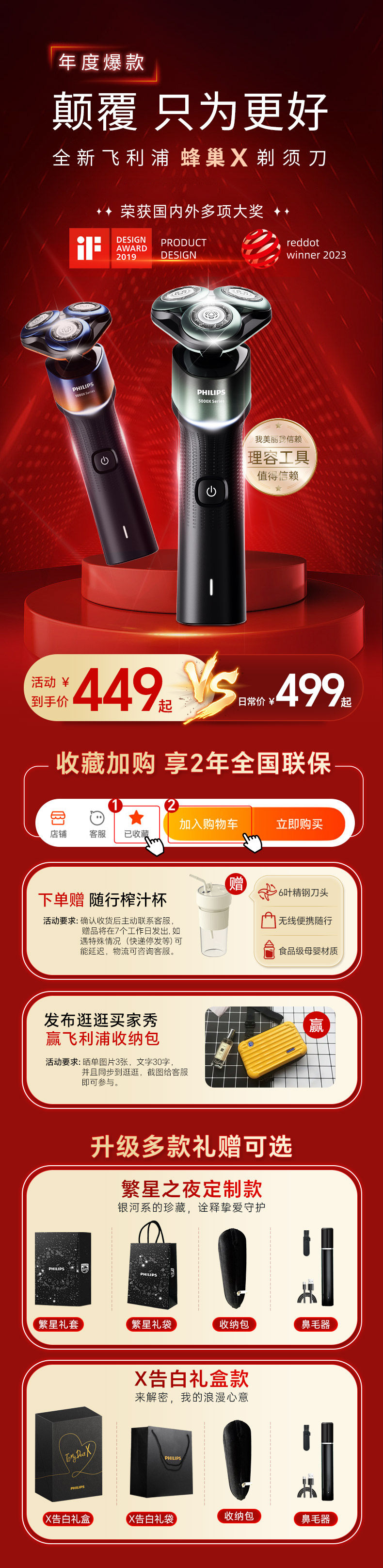 Philips Razor Pealhive x Мужская борода -нож для бритвы Электрическая подарочная коробка для парня Direct Sales x5002