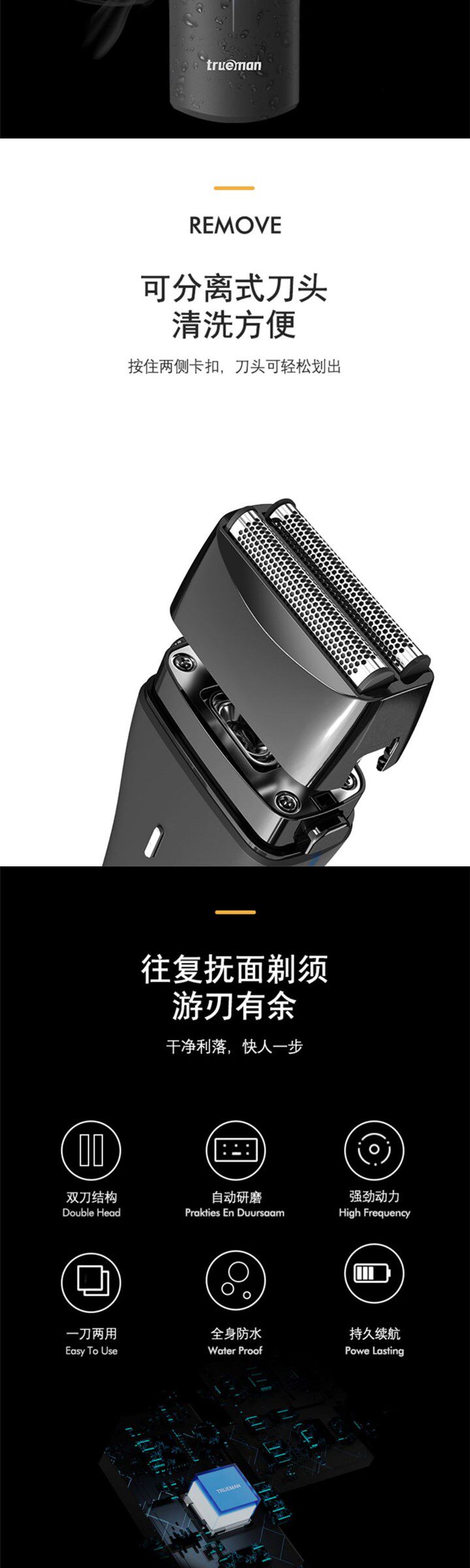 Истинный мужчина бритья нож Электрический мужчина до дуплексного портативного скребка 7HW Full -Cody Water Water News News Double Нож