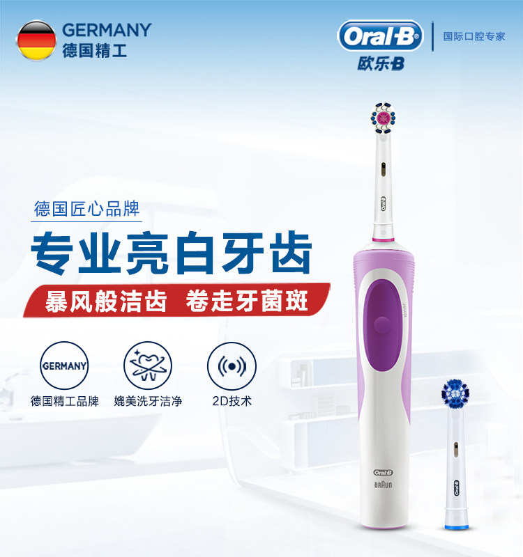 OralB/欧乐B Яркий взрослый электрическая зубная щетка D12 вращающаяся маленькая круглая голова пары подарка на день рождения 299