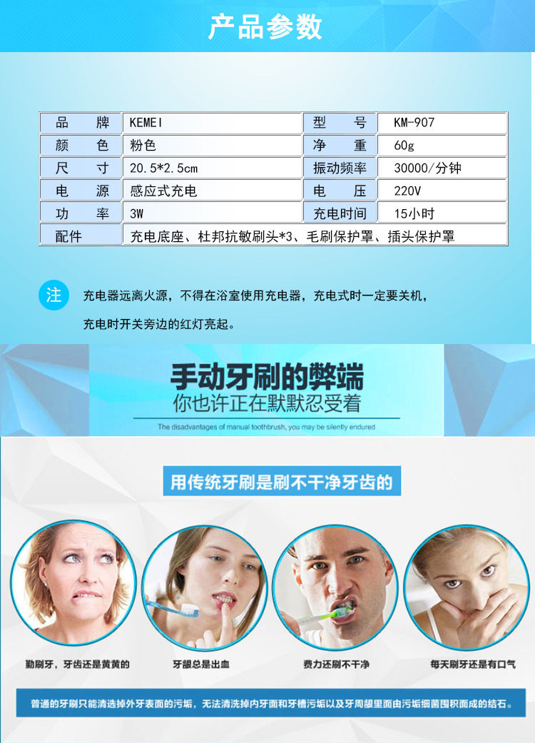 Мягкая индукционная зубная щетка для детей и взрослых, вибрация