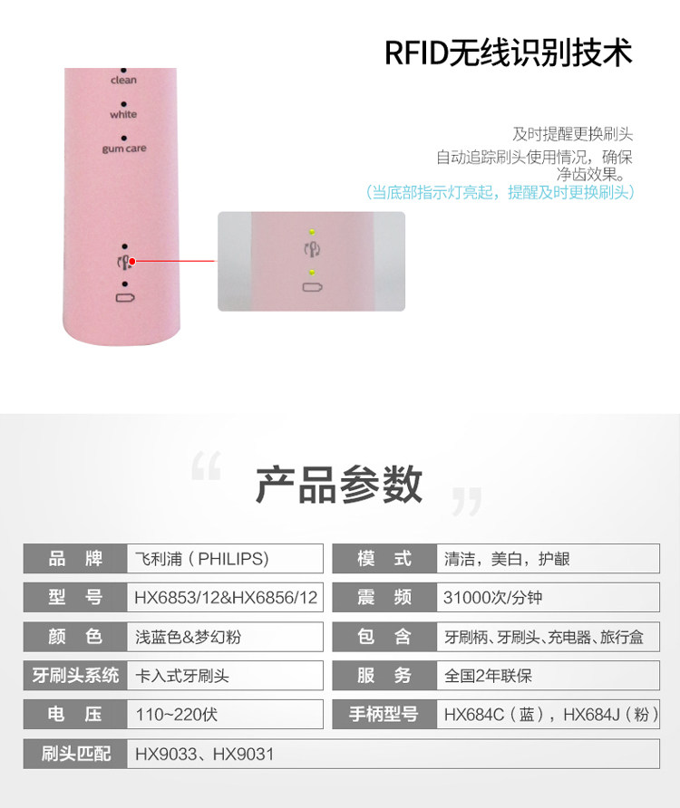 Philips Электрическая зубная щетка HX6853 HX6856 Small Diamond Sound Wave полностью автоматически HX6850 HX6730