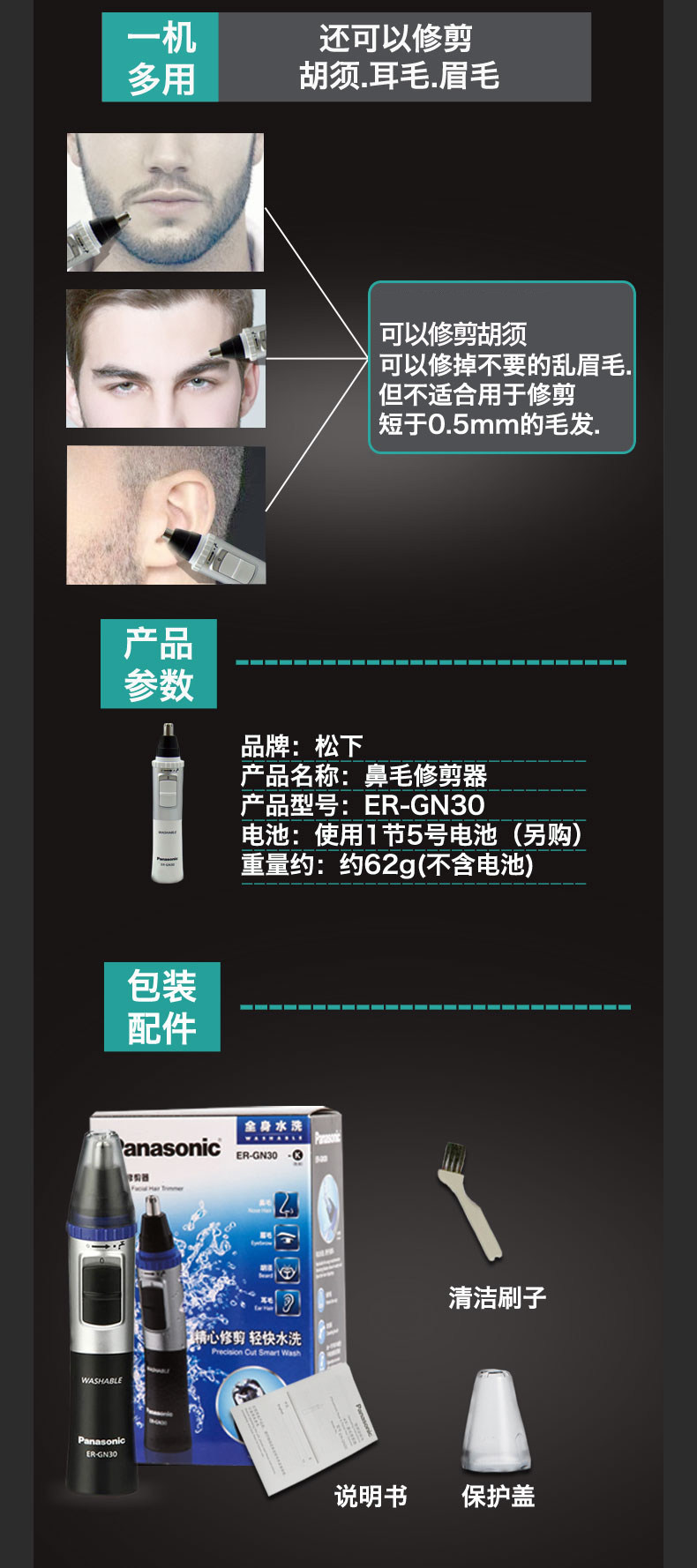 Триммер для волос в носу Panasonic, мужской электробритва и стрижка, очиститель для волос в носу, нож для стрижки волос в носу, триммер для волос в носу для мужчин