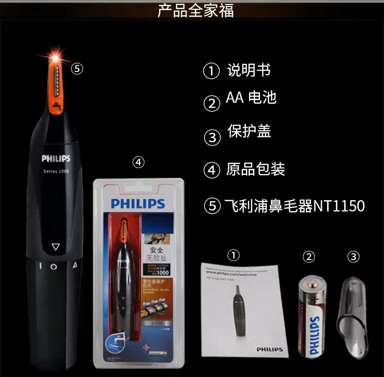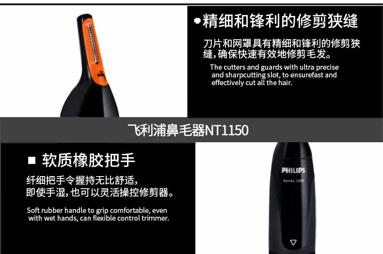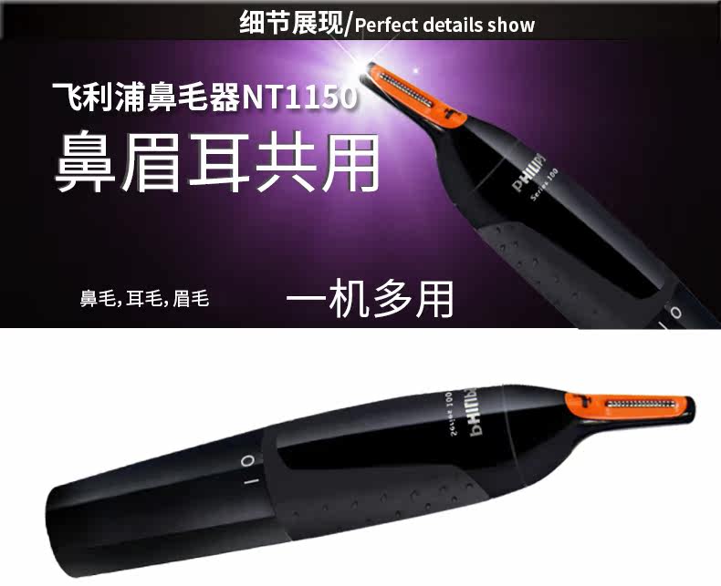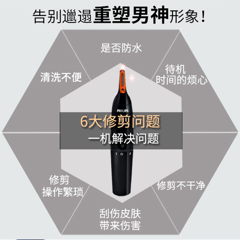 Филипс -носовая режущаяся устройства NT1150 Мужские электрические волосы носа, нос, ухо и брови, общее мытье воды для тела и ремонт бровей
