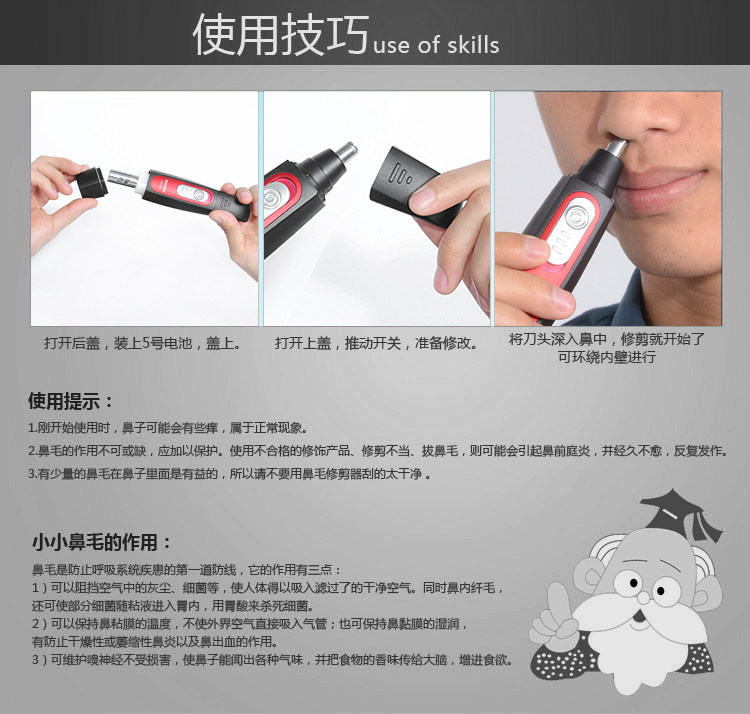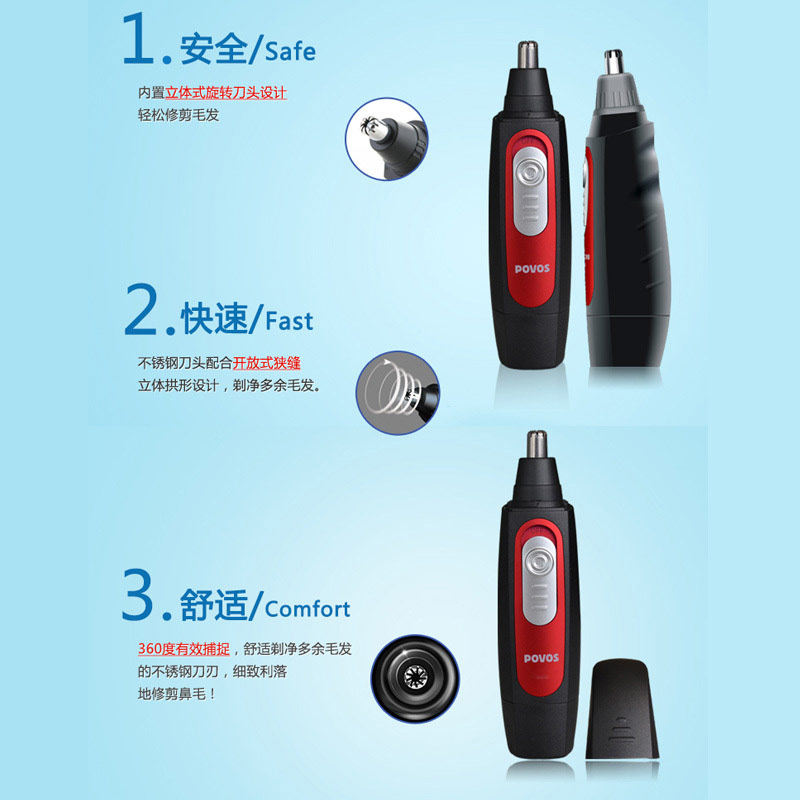 Povos носовые волосы триммеры бреют нож нож с электрическими волосами в носу