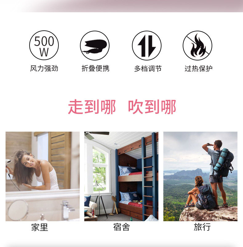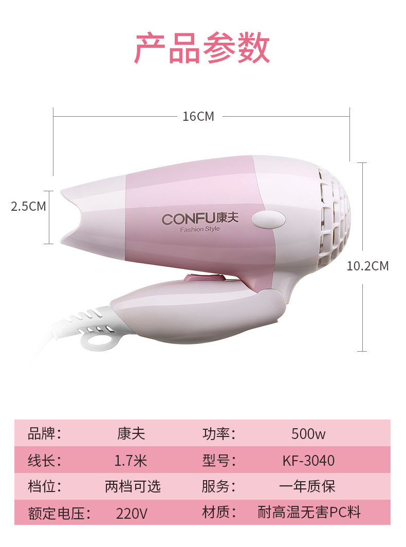 康夫 Безвредный портативный фен, 800W, не повреждает волосы