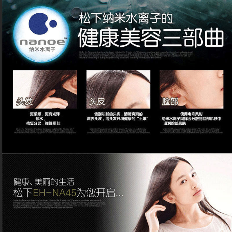 Panasonic Hair Dricher EH-NA45 Домохозяйственные мощные ионы нано-вода с негативным ионом с горячим и холодным воздухом по уходу за волосами