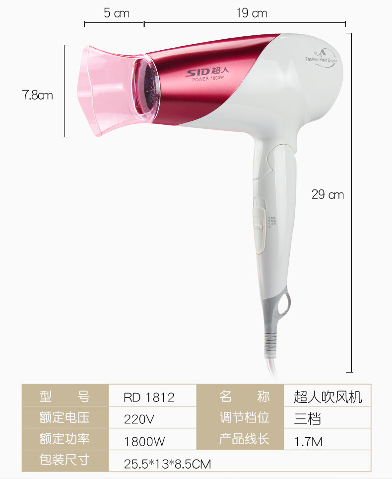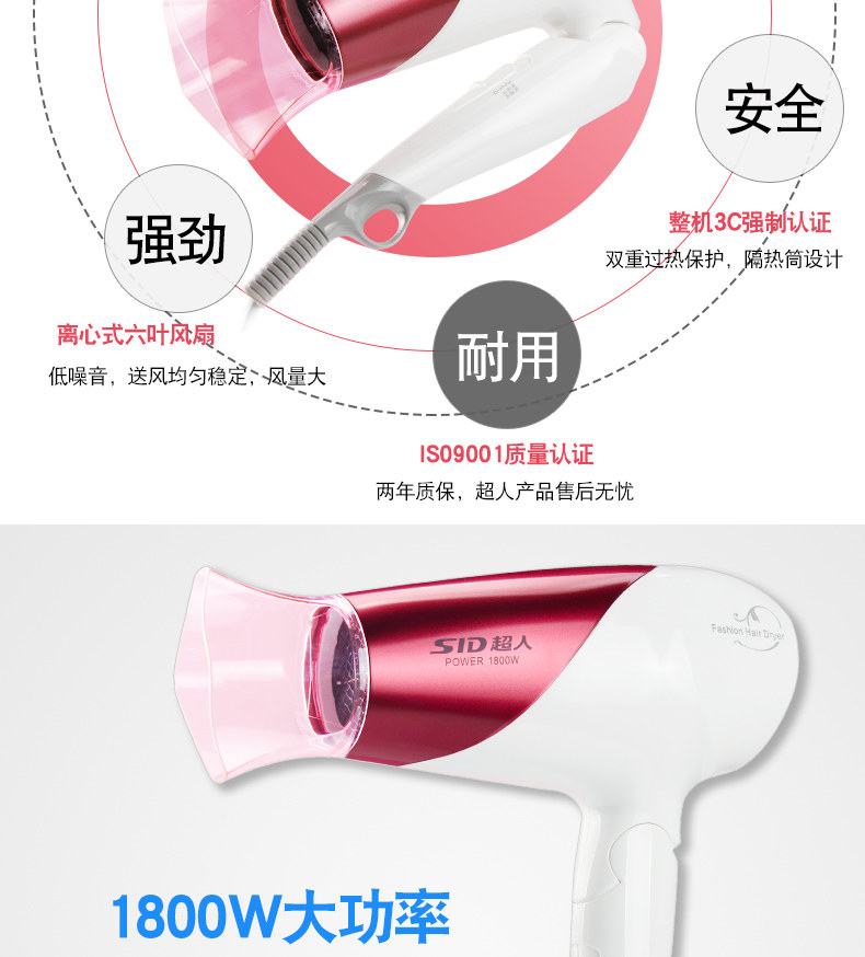 Супермен парикмахерский домохозяйство складывающегося высокой силы Супермен Хауэн Хауэн RD1812 Холодный и горячий ветер не повредит цилиндру волос