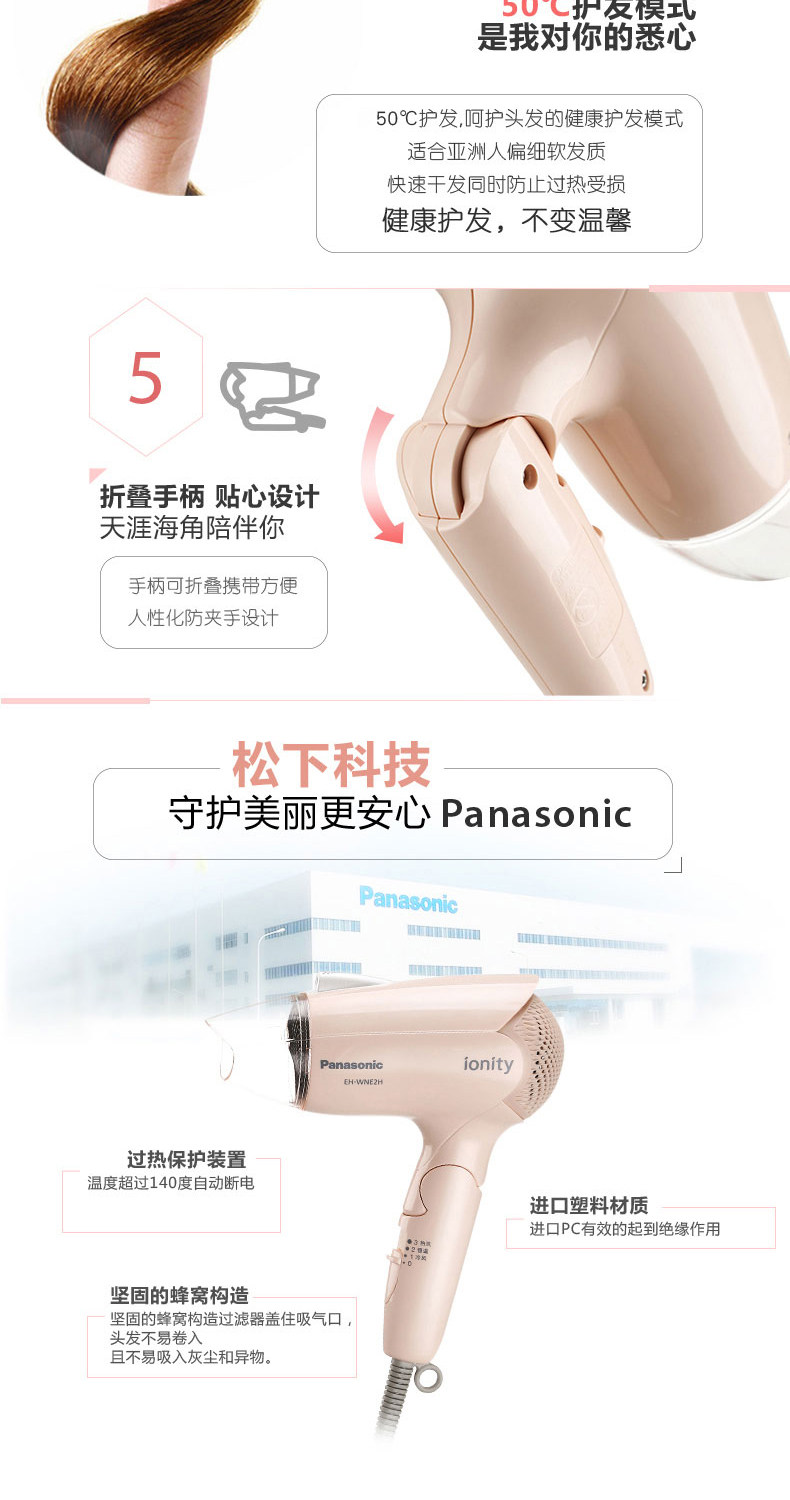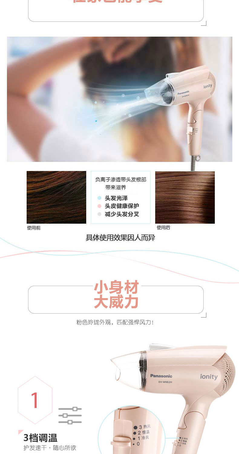 Panasonic Hair Driceer Office Ion Care Hair High -сила горячий и горячий ветер Дом маленький феном WNE2H [119] 2G