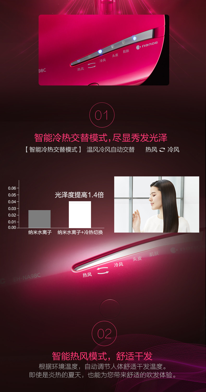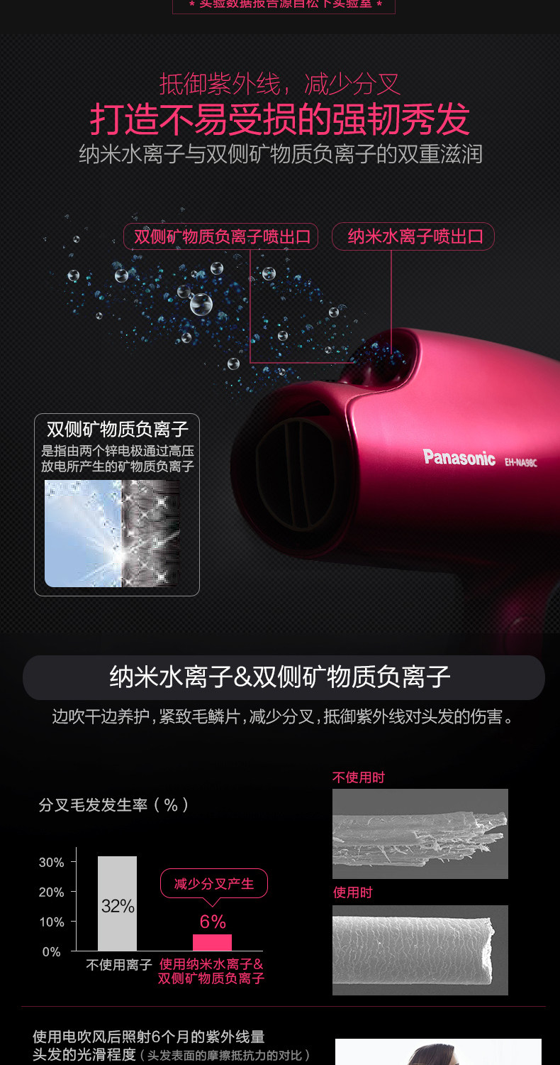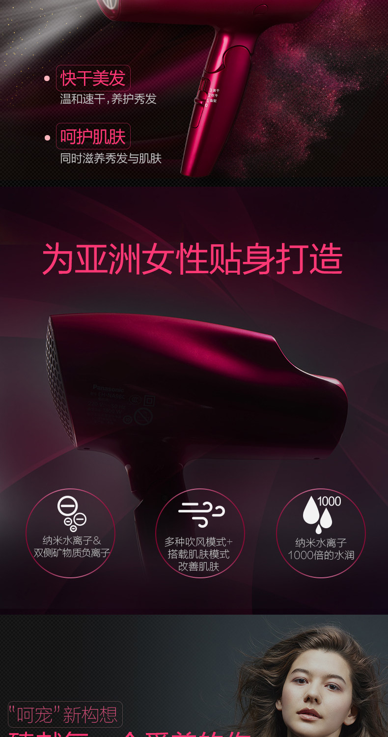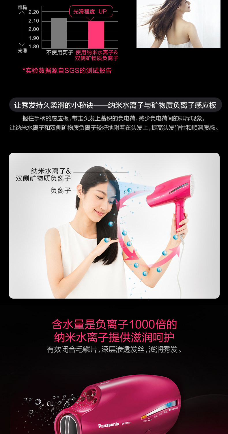 Panasonic Hair Driceer с высокой мощной нано -водой негативной ионной уход за волосами не -ворота NA98