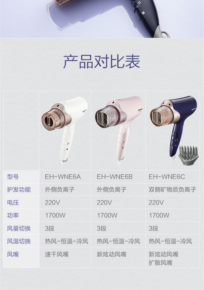Panasonic/松下 Сломанные вентиляторы мощный фен Домохозяйство с двойным отрицательным ионом не повредит EH-WNE6C