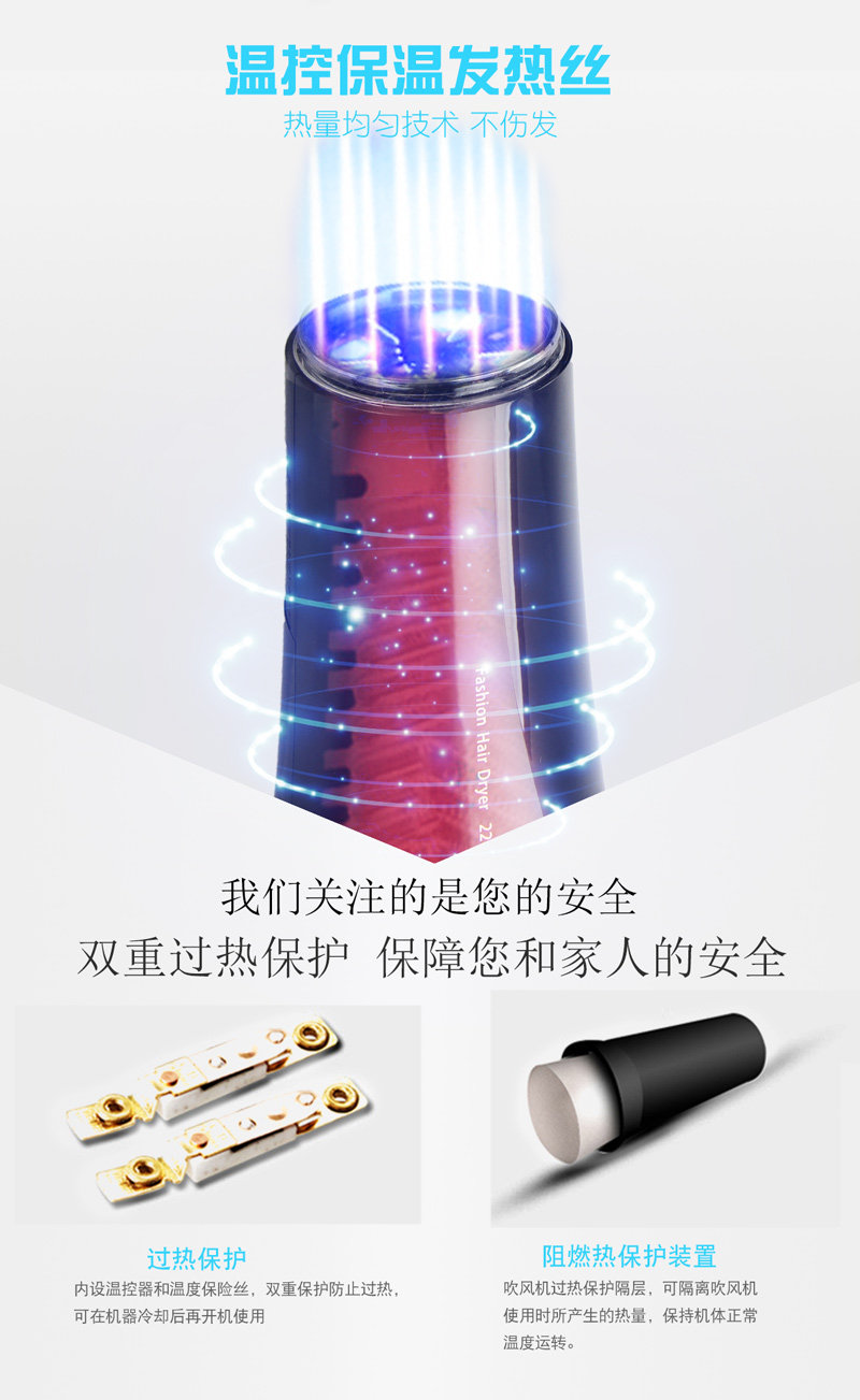 Горячий и холодный быстросохнущий фен, высокая мощность, 2200W