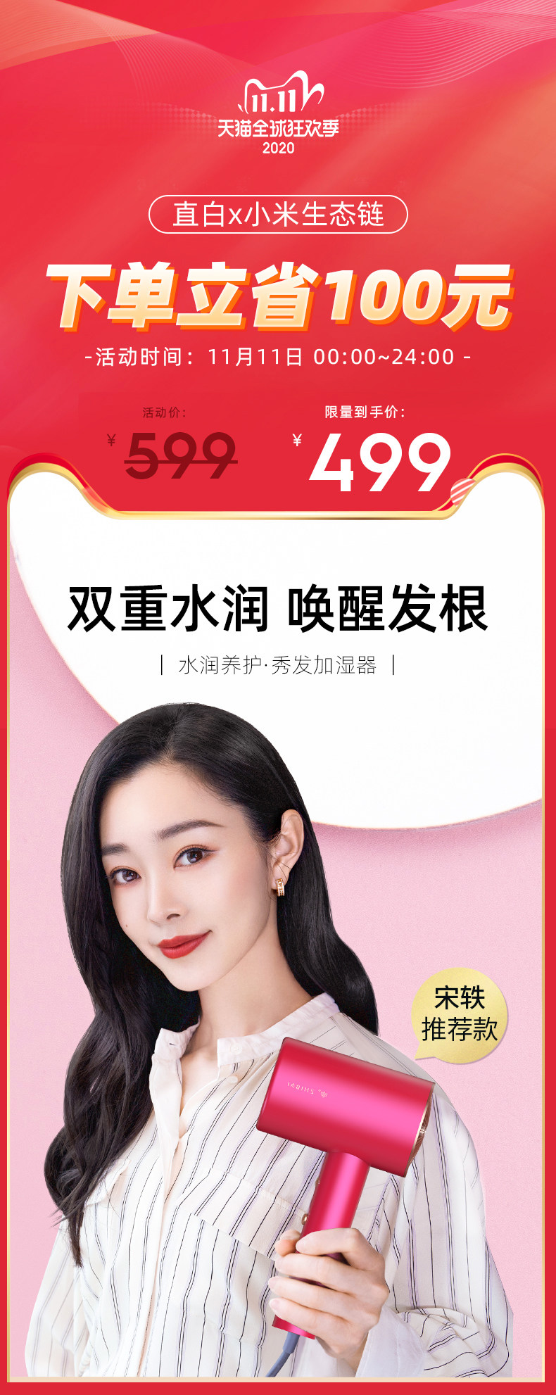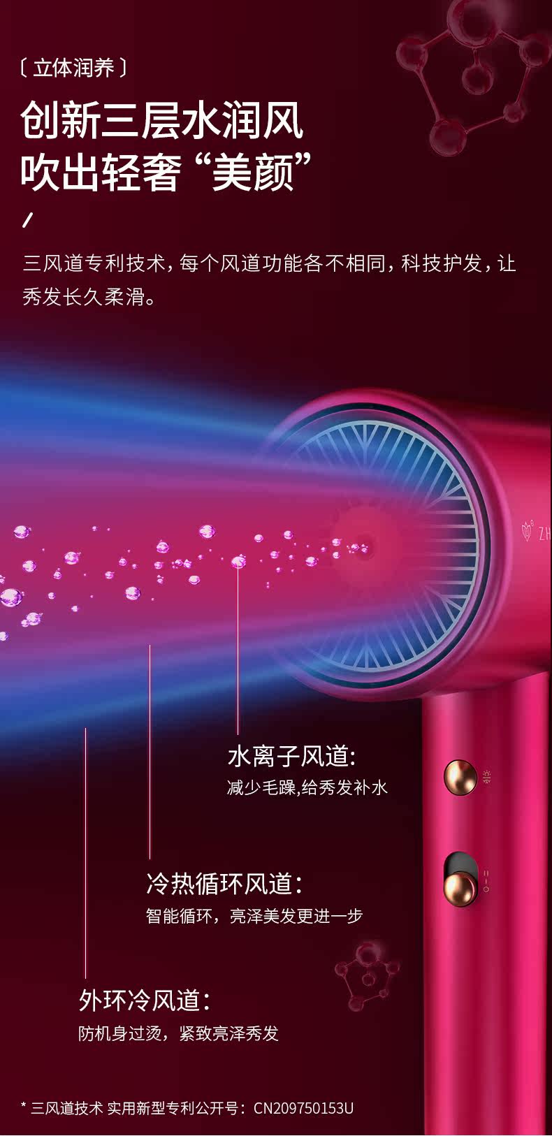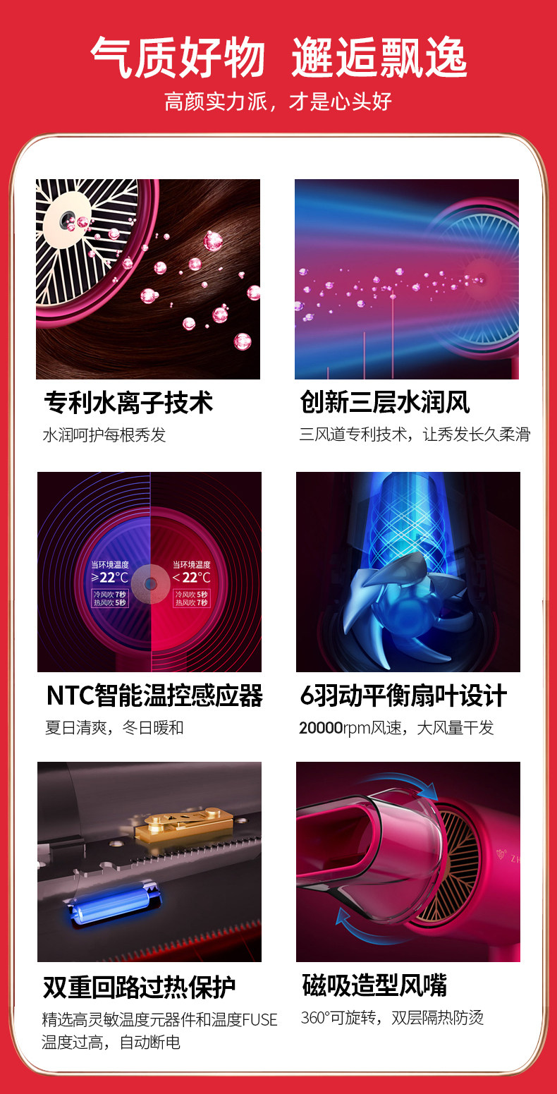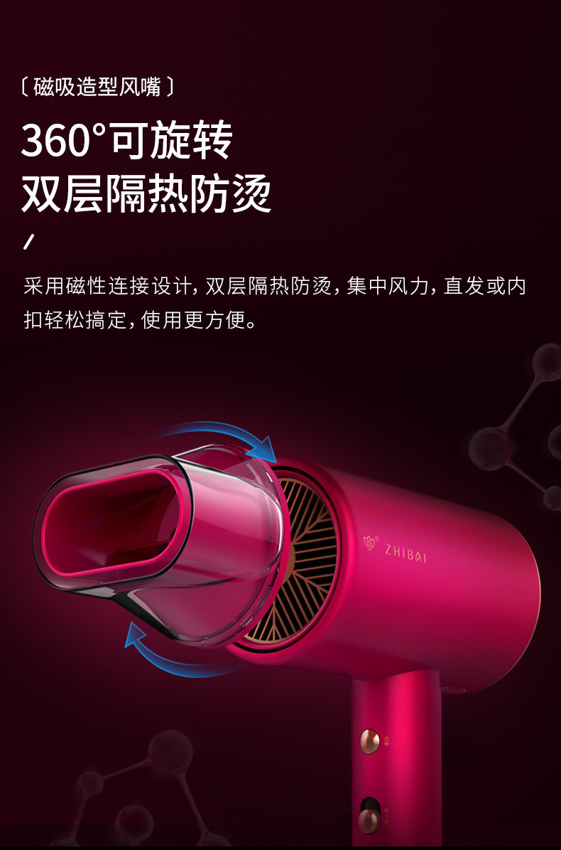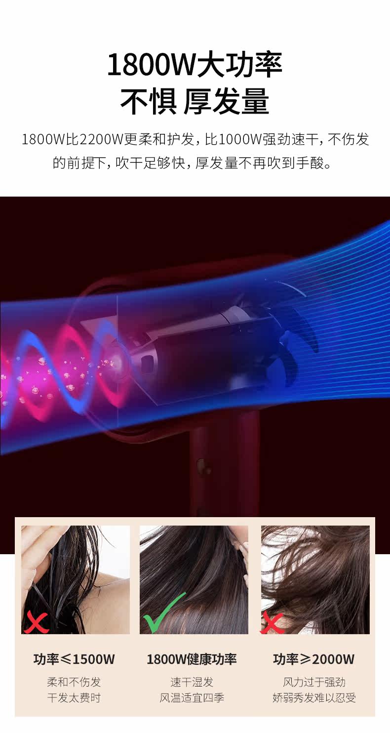 直白 Вода -ионная фен, женский дом с негативной ионной стойкой для волос с высокой портативной общежил, xiaomi