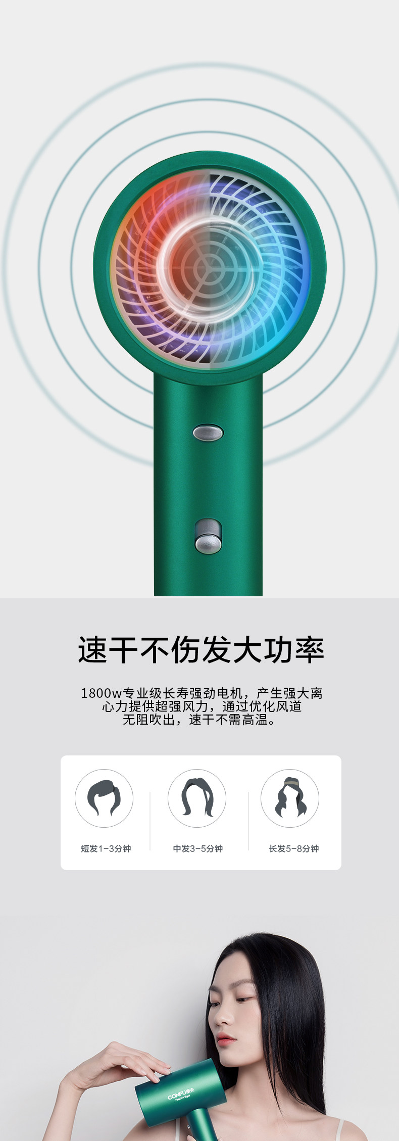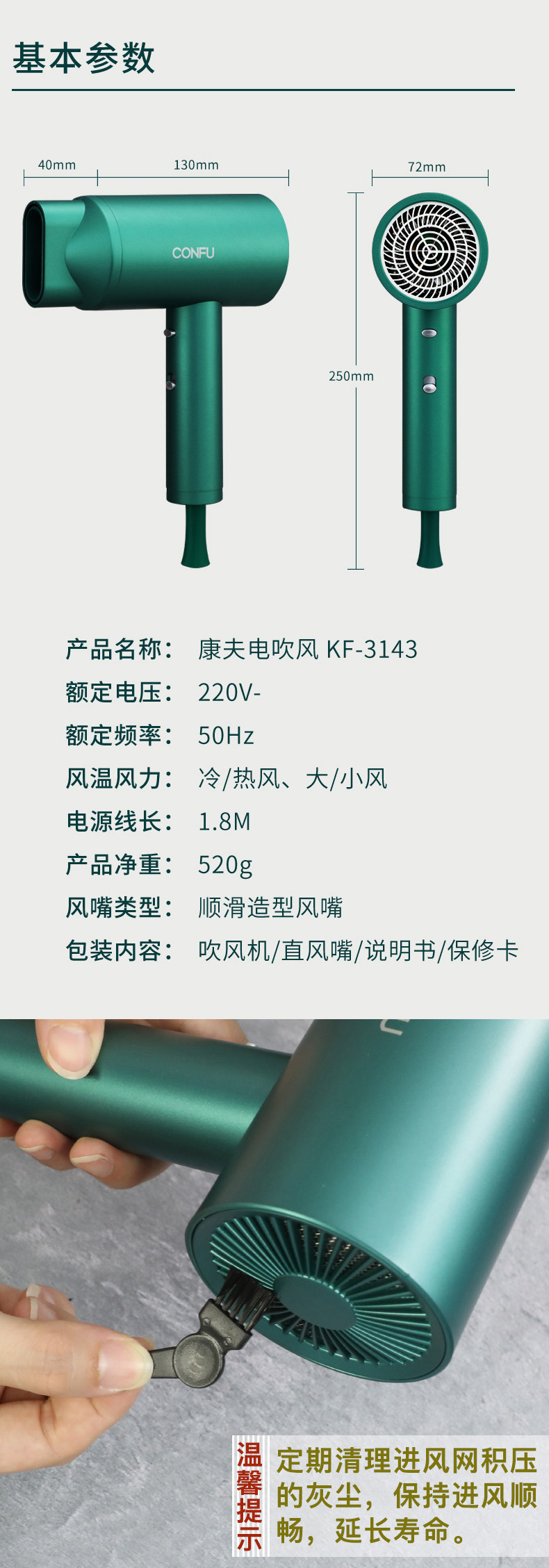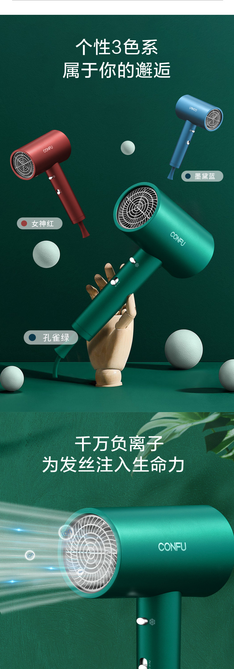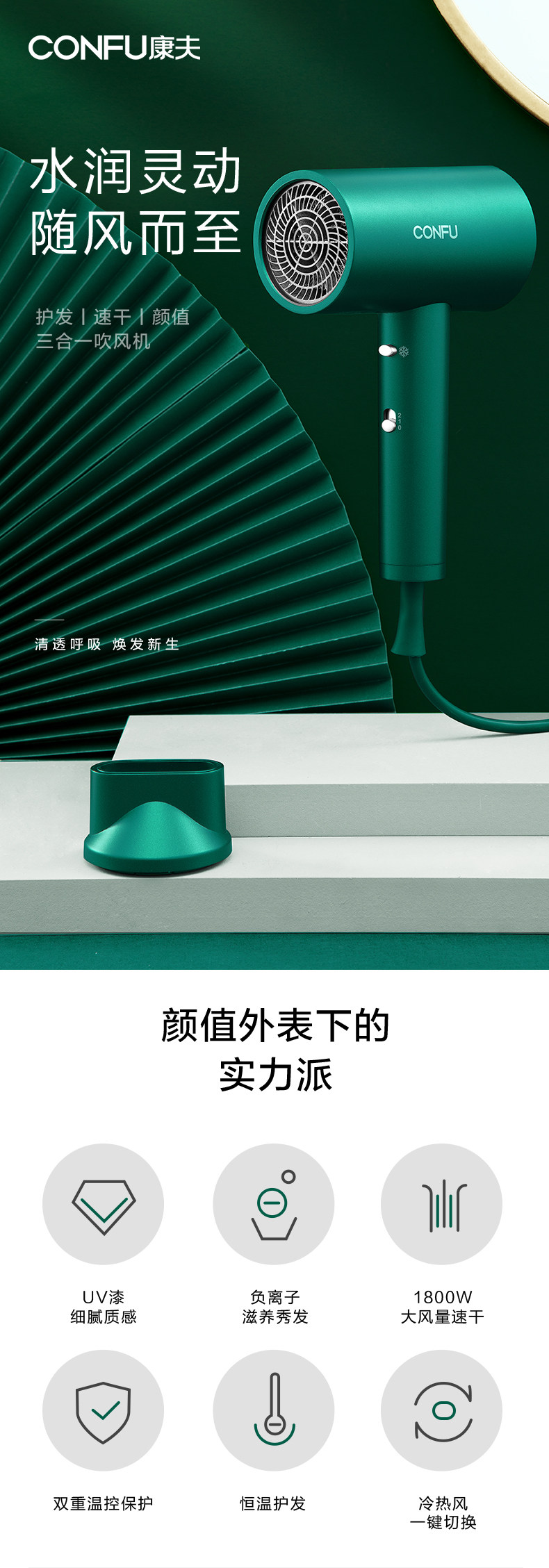 康夫 Сделай из волос домохозяйства с негативным ионным уходом за волосами с высокой силой горячих и горячих ветер.