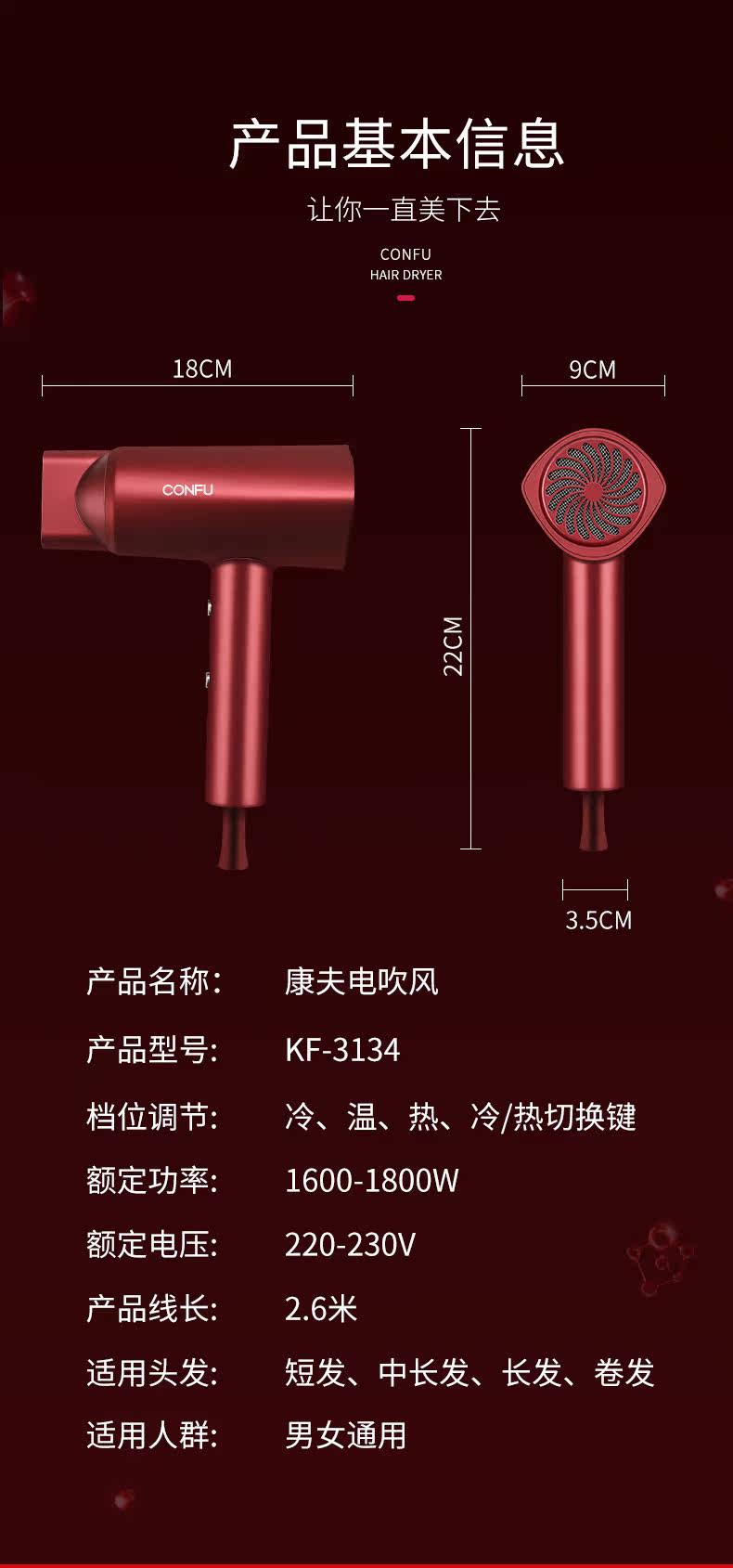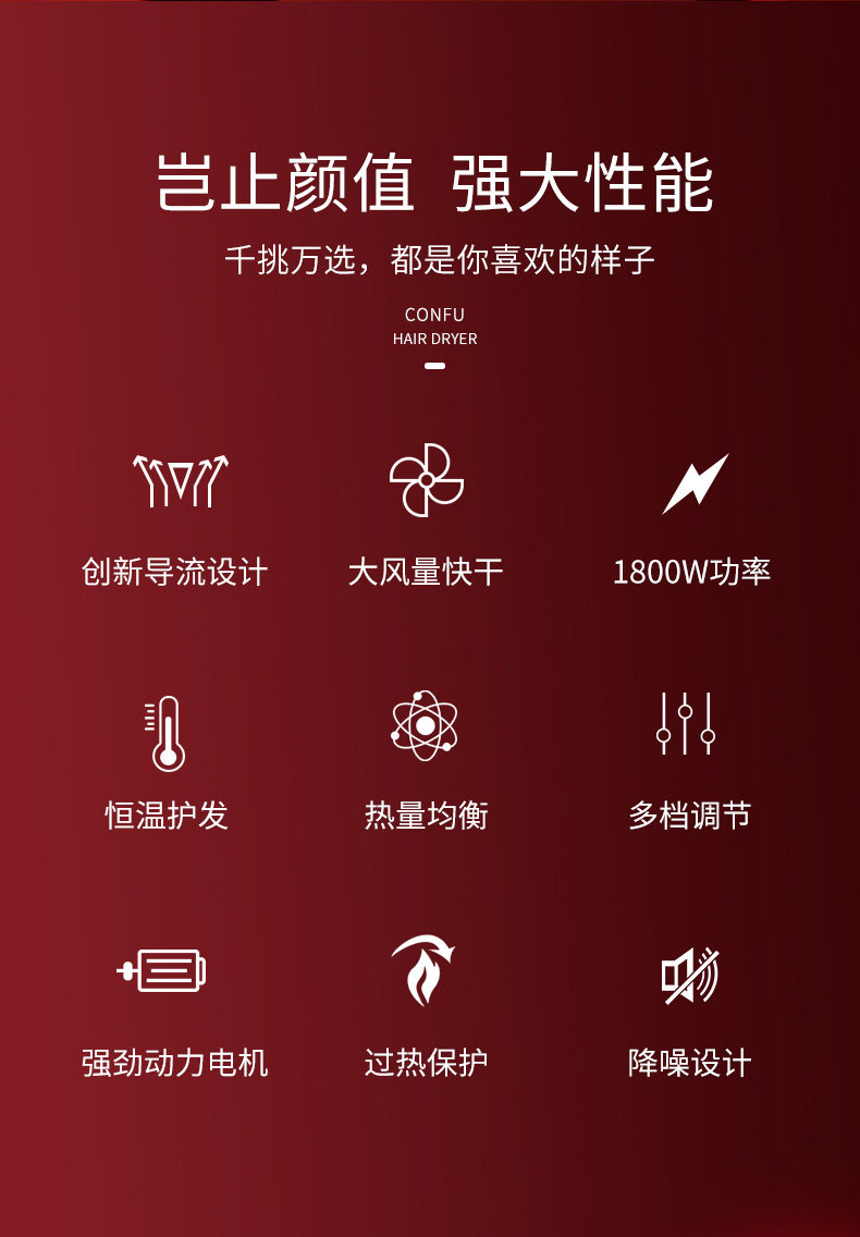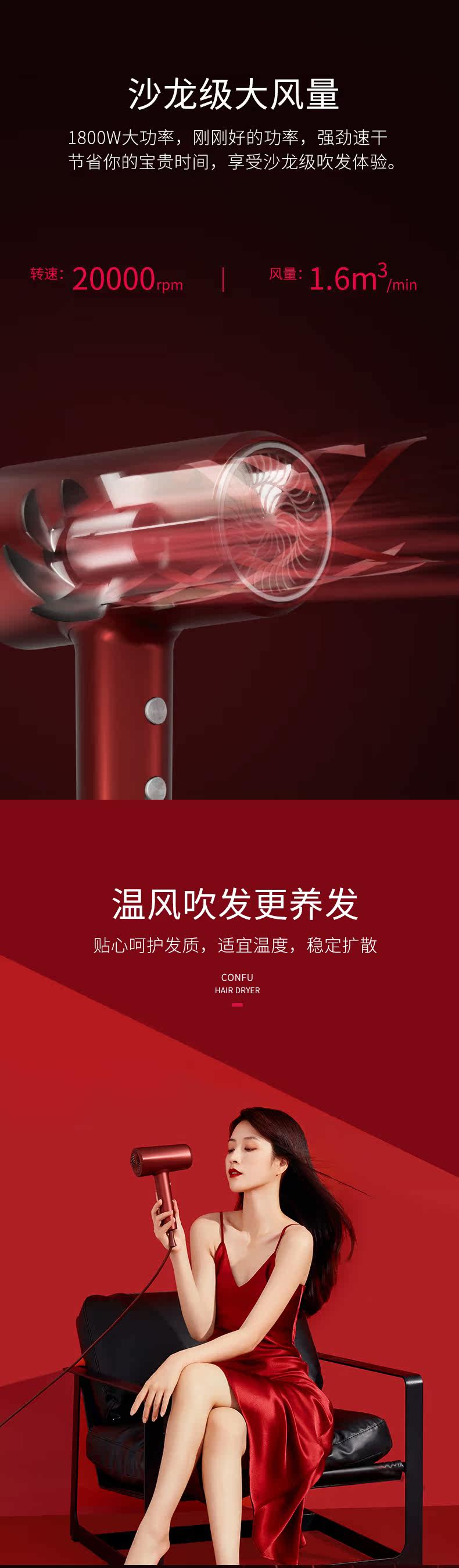 康夫 Безвредный горячий и холодный быстросохнущий фен, высокая мощность, не повреждает волосы