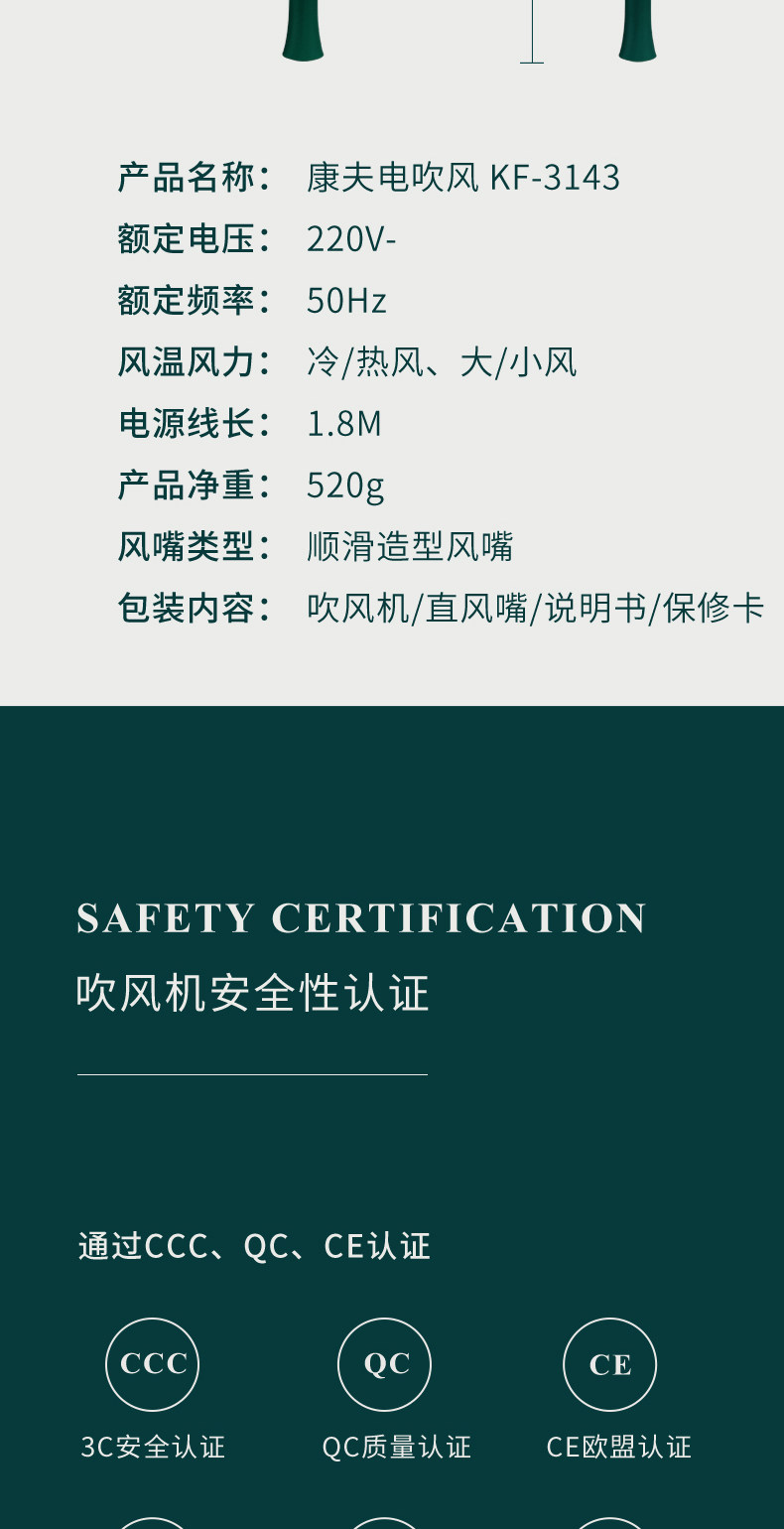 康夫 Большой ионный ионный уход за волосами домохозяйство с высоким содержанием энергии для девочек -общежития 150 портативных волосков.
