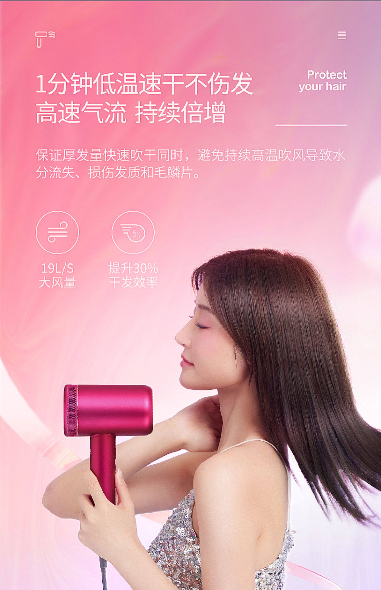 Высокоскоростной горячий и холодный быстросохнущий фен, высокая мощность