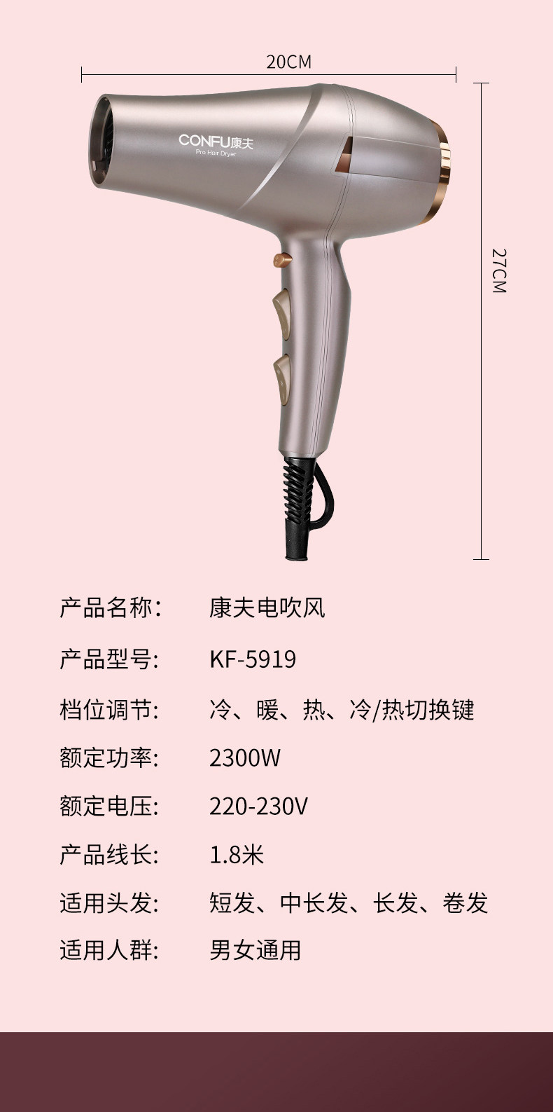 康夫 Домохозяйство Labberry Office Ion Hair Hair Hairressers Special High -Power 150 Speed Dry -воздушный цилиндр