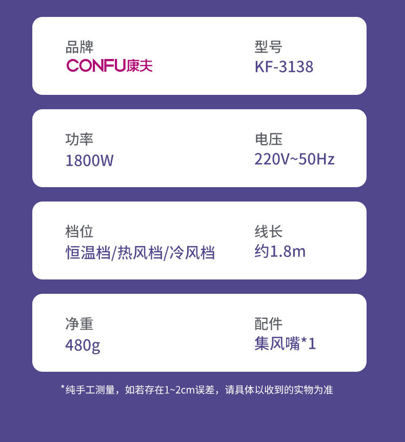 康夫 Горячий и холодный быстросохнущий индукционный фен, высокая мощность