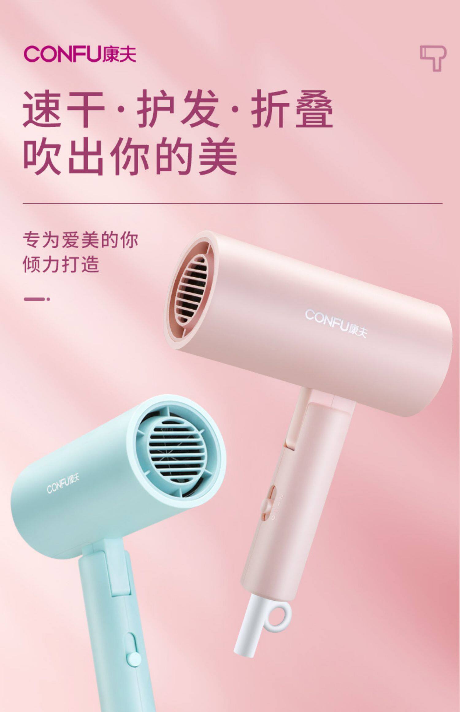 康夫 Домохозяйство волос негативное ион 150 не повредит общежитию для студентов для волос для портативного поклонника по уходу за волосами складным