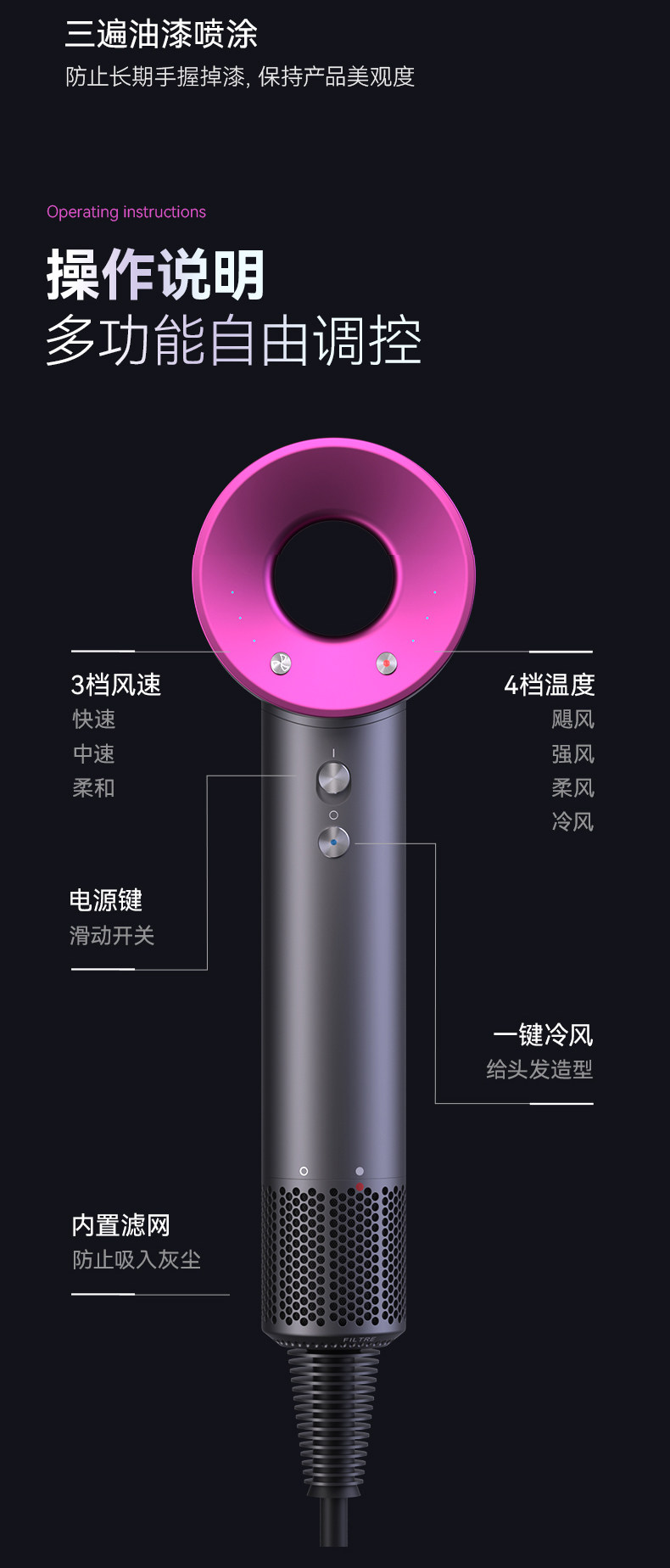 Высоко -скоростная фен Домохозяйственная негативная ионная уход за волосами с высоким содержанием мощности быстро -сушилка для волос Huaqiang North New Hair Dricher 3524