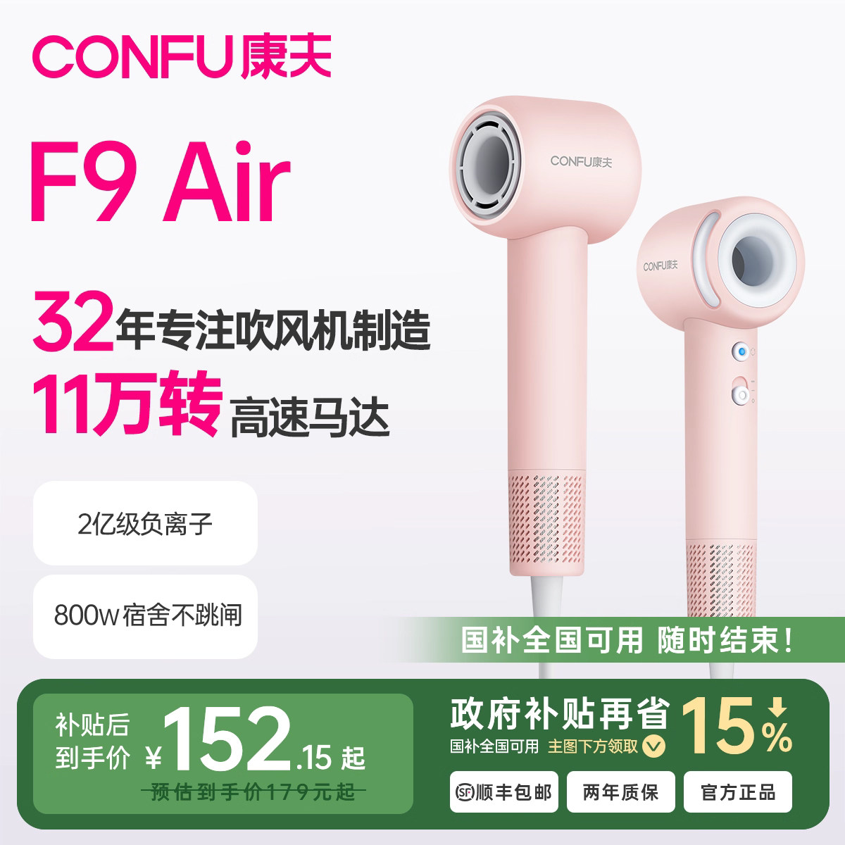 Confu Kangfu High -Speed Draher Drormitory для учащихся с малой мощностью отрицательный ионный портативный молодежный издание F9air