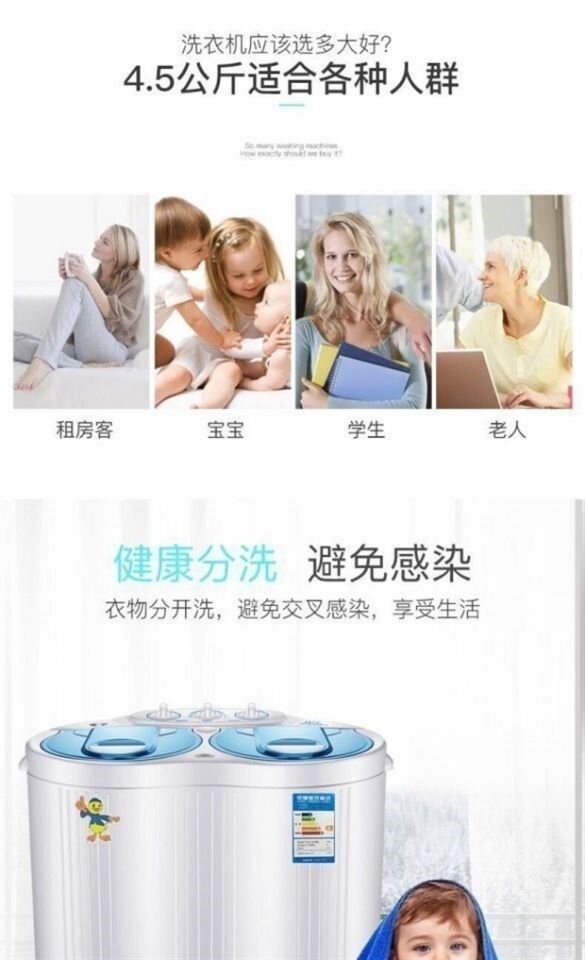 4 кг большой способность двойной бочки мини -стиральная машина небольшая детская доморочная общежития домохозяйственное общежитие.
