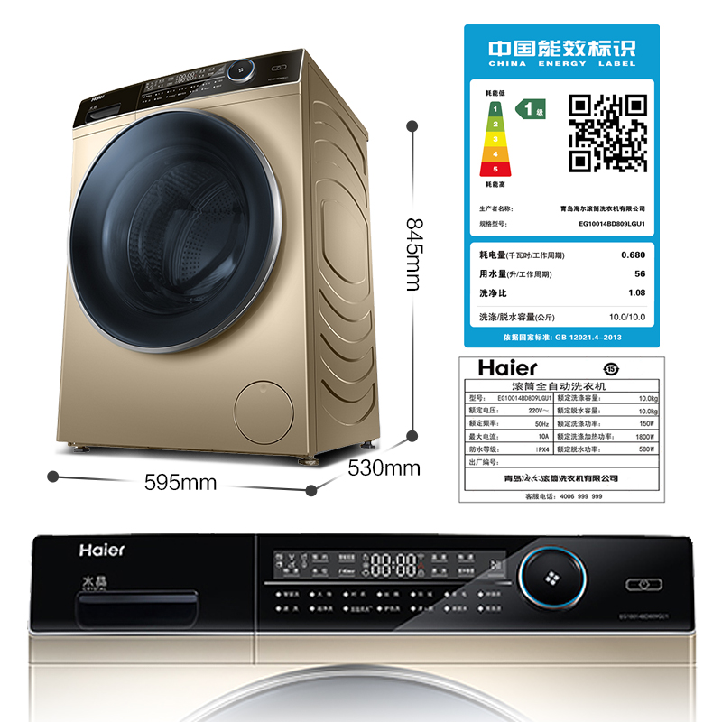 Haier 10 кг кг прямо -див -переменная частота Slim Full -Automatic Plorker Parlection Home EG10014BD809LGU1