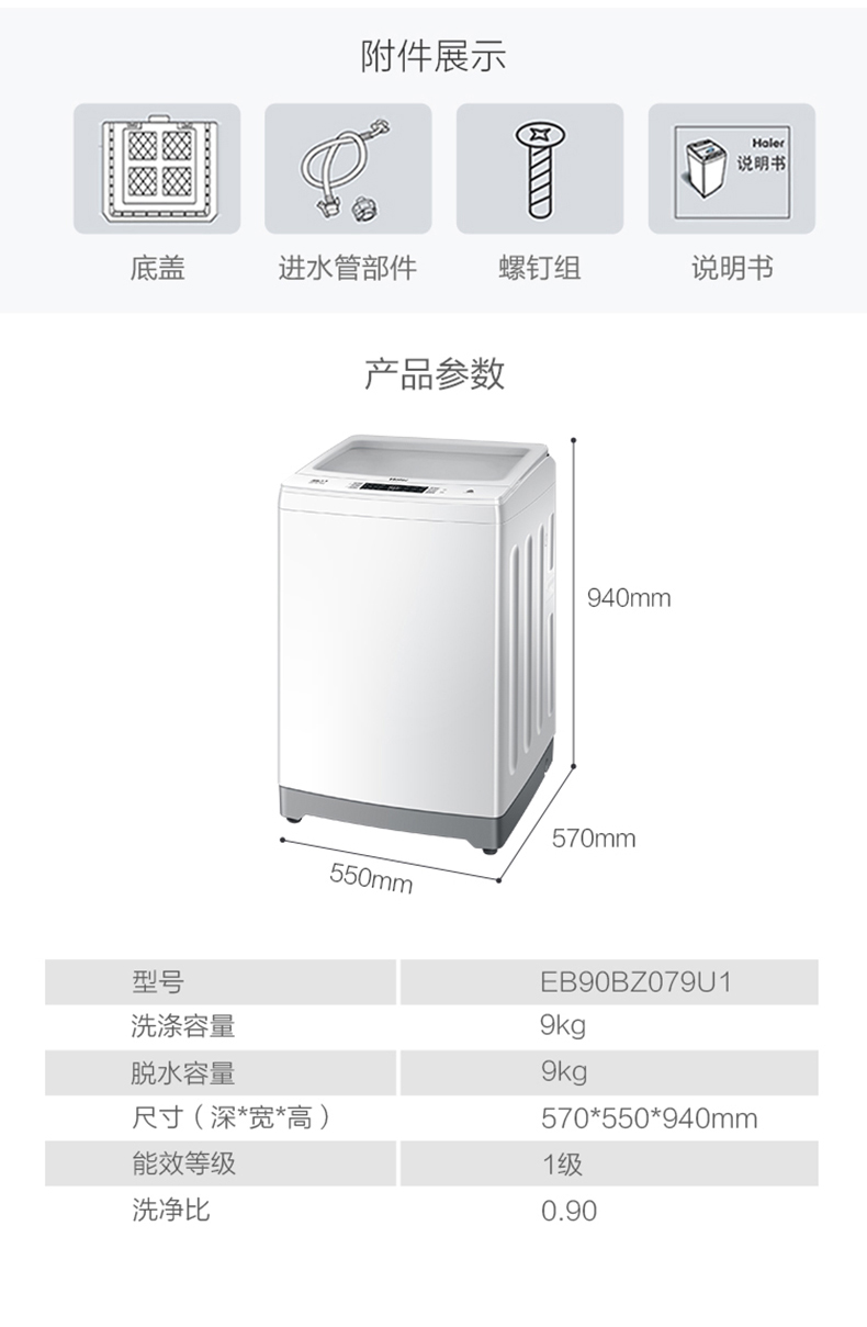 Haier/海尔 EB90BZ079U1 9 кг частота привода с непосредственным приводом вода Полностью автоматическая стиральная машина