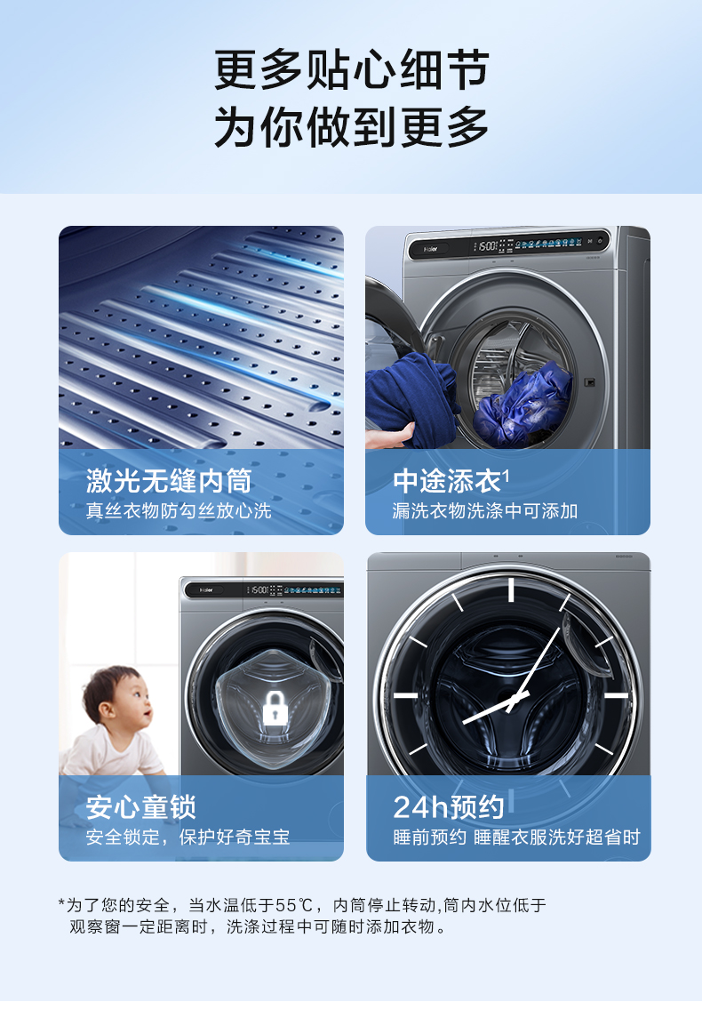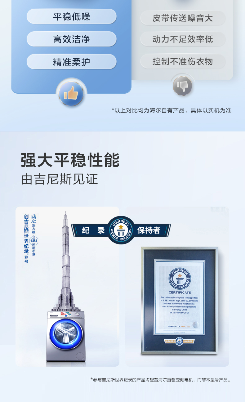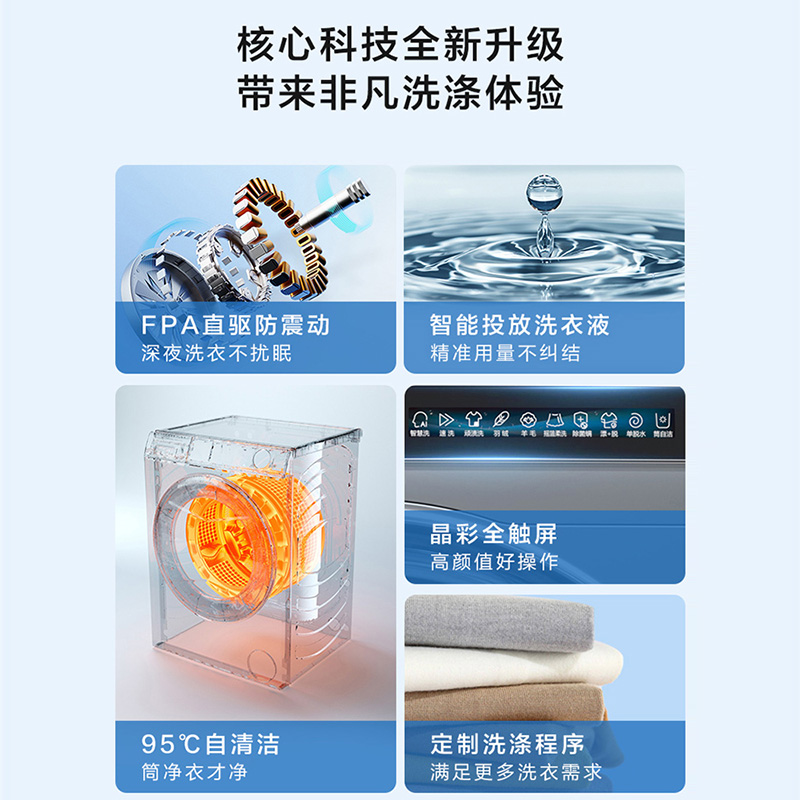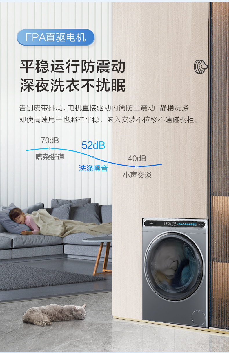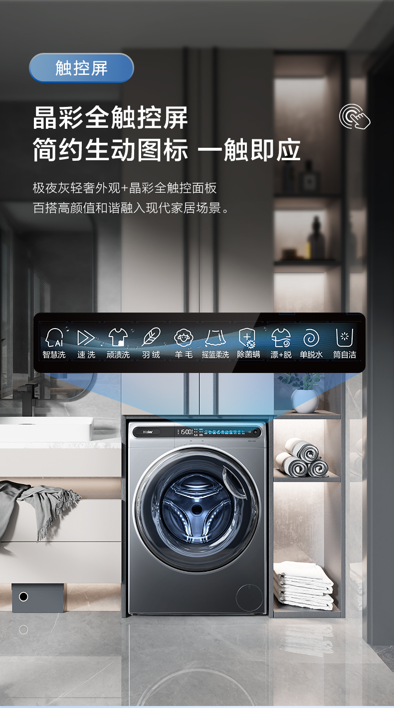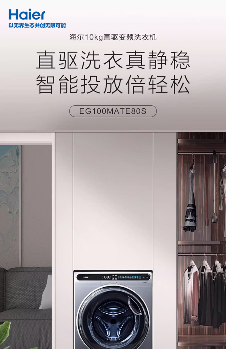 【Антивибрация】 Haier 10 кг Полностью автоматическая автоматическая большая способность умного дома кристалл цвет с прямым приводным барабаном.