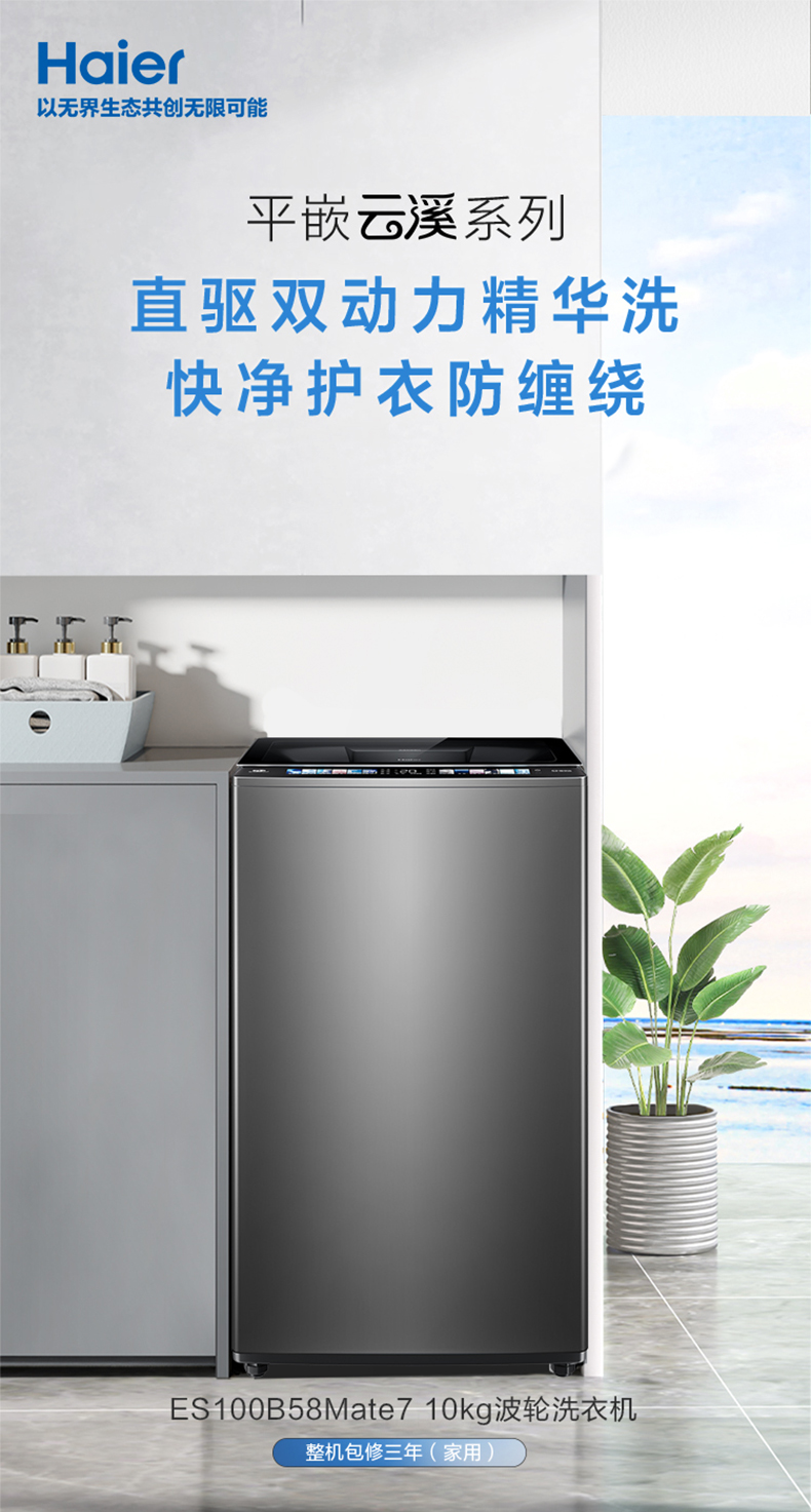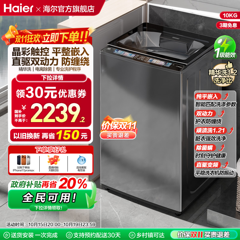 [Новая субсидия] Haier -шкивовый стиральная машина 10 кг большая емкость полностью автоматическая эссенция.