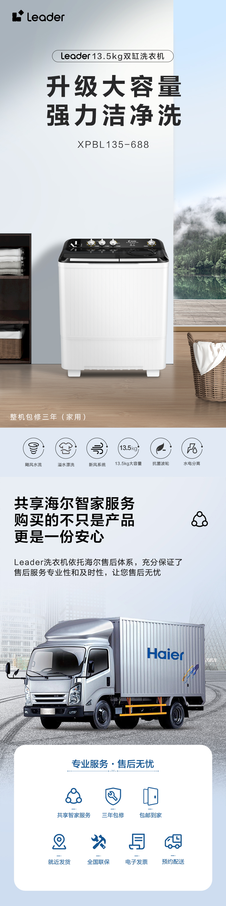 Haier Zhijia Leader Commander 13,5 кг Миттер оставшиеся домики rout Half -Auto Double Two -Barrel Paremant Machine 688