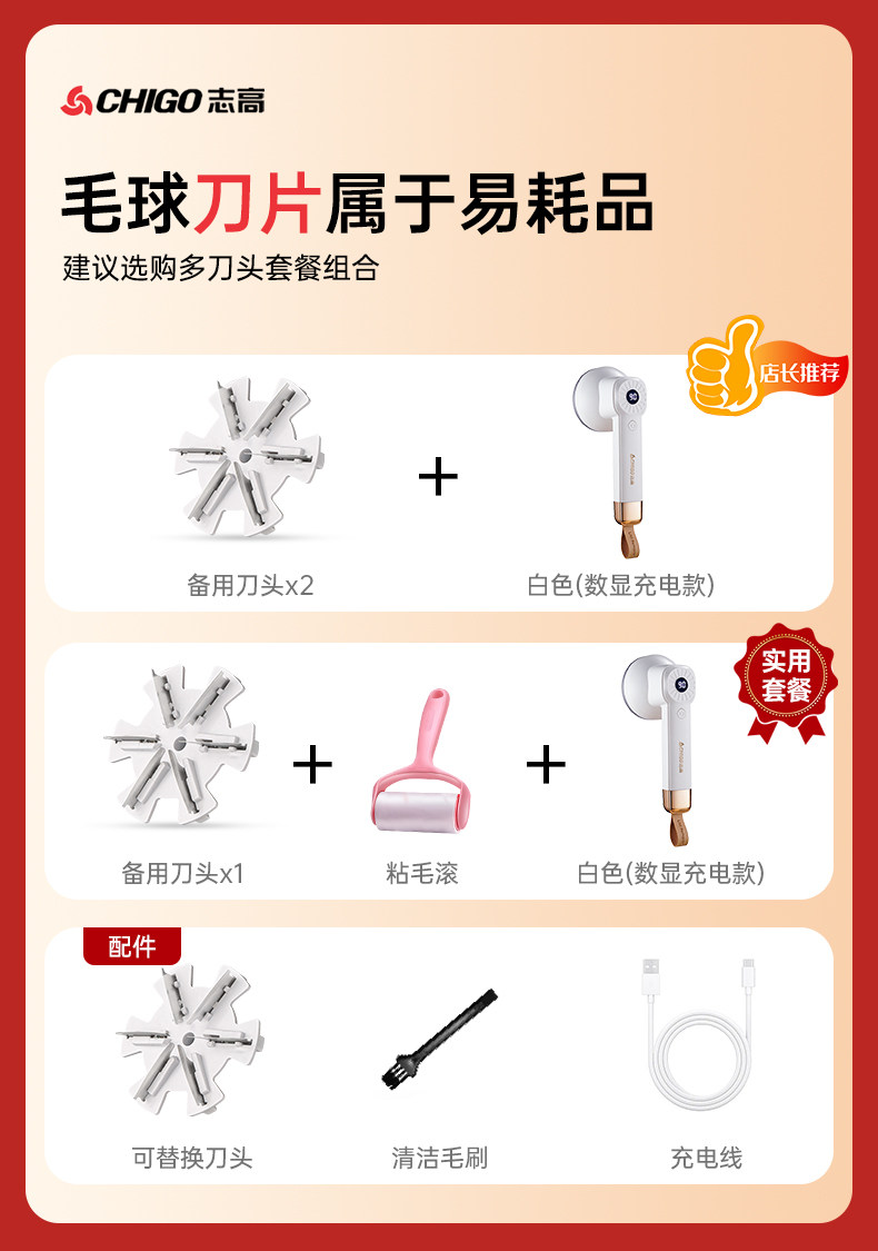 - Белое (цифровое зарядное устройство) +1 головка ножа+липкая шерсть