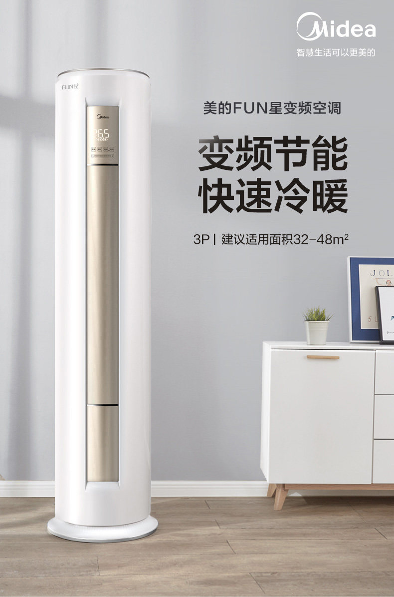 Кондиционирование воздуха Midea 3 Pilgles Первая энергоэффективность Веселая частотная частота частота звезд, теплый и теплый умный дом вертикальный шкаф в гостиной N8MHA1