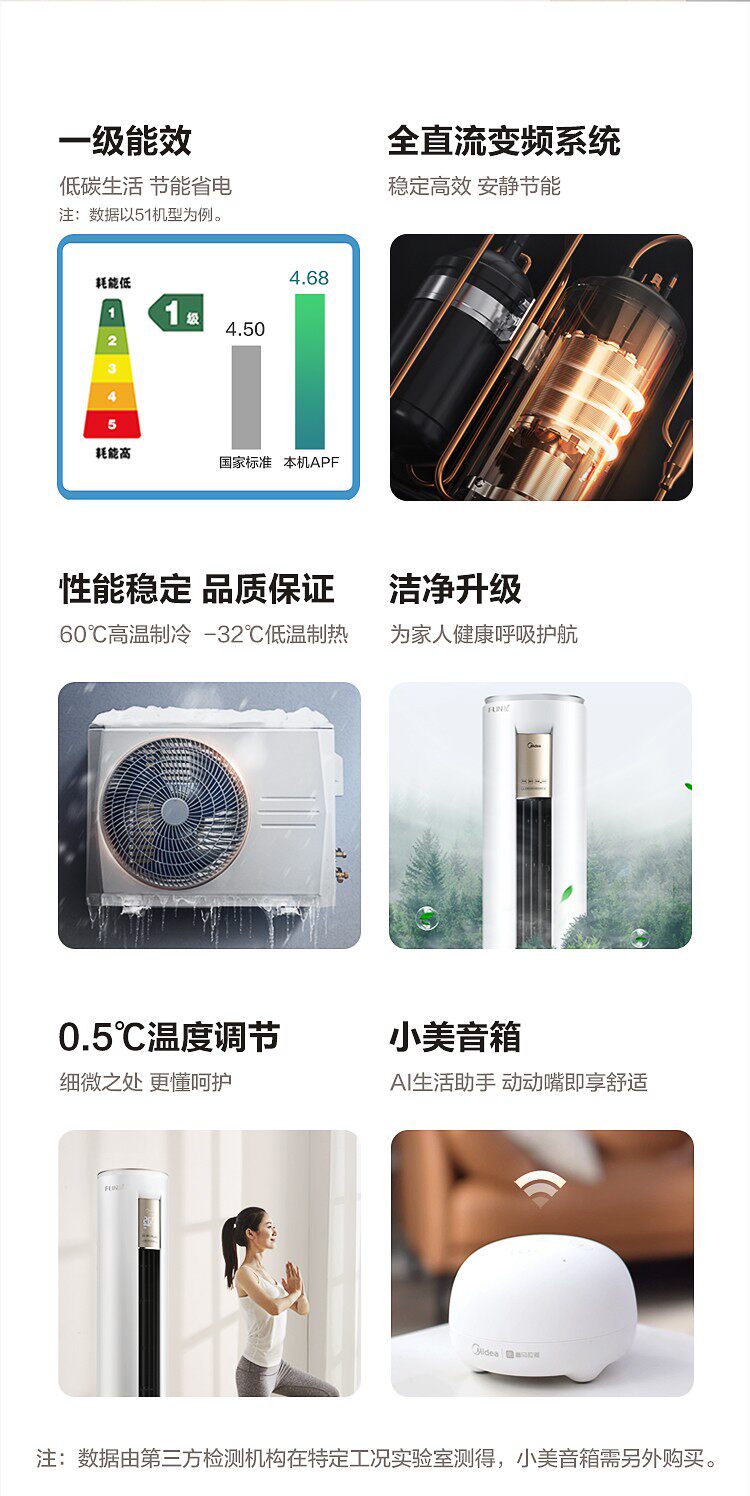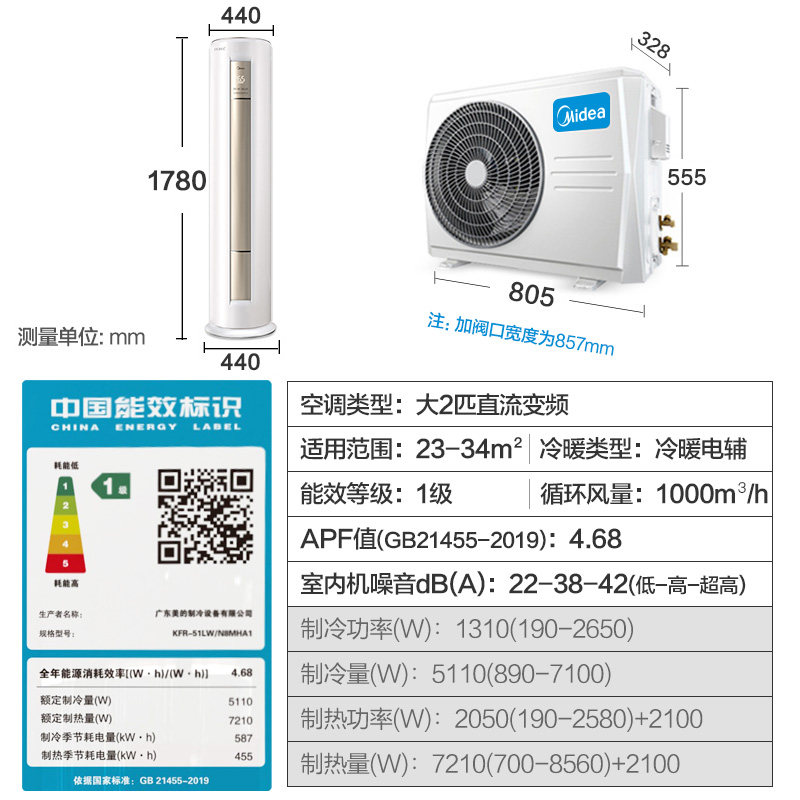 Мидю -кондиционер Большой 2 P Pelid Energy Effecially Fun Star Star Instantoor Частота интеллектуальная вертикальная гостиная шкаф N8MHA1