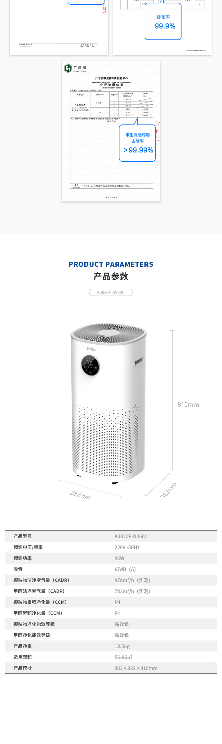 Haier KJ820F-N860C Очистка воздуха крупный домашний тип разделился, разделите Formum Haze Second-Hand Spect Hour More Dust