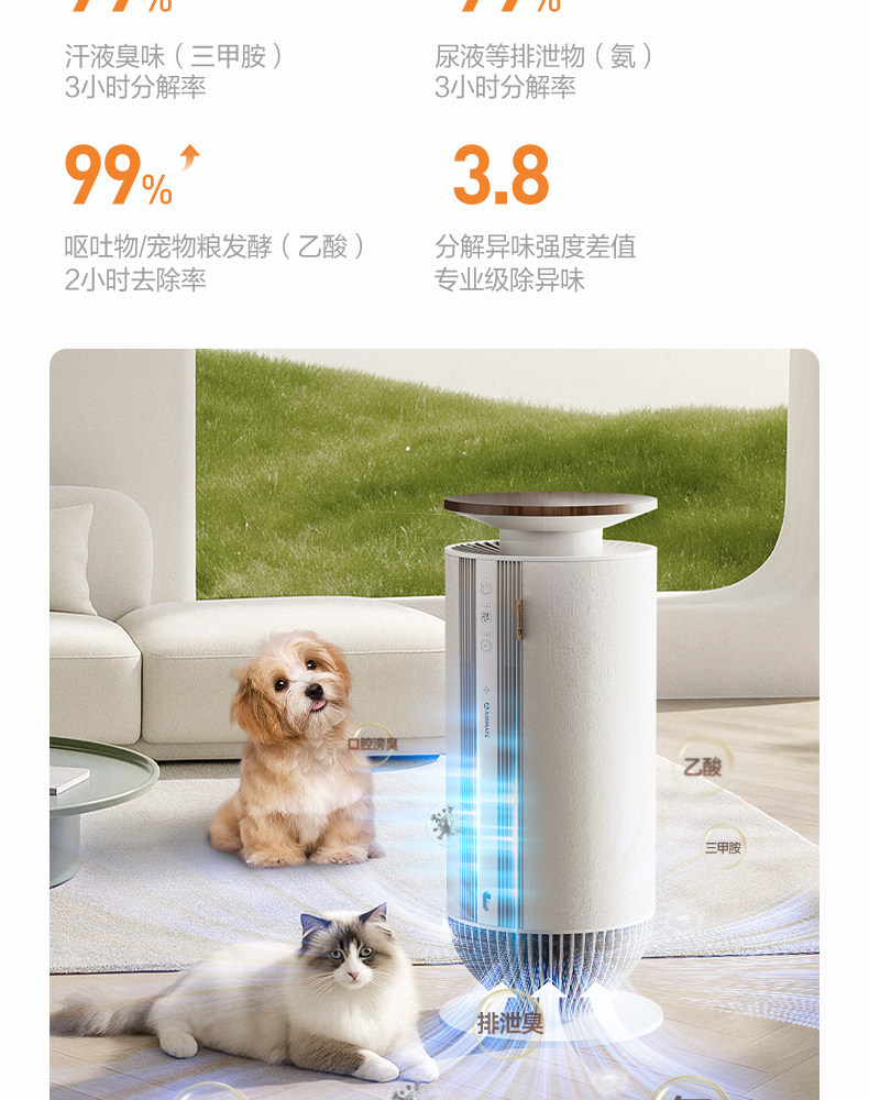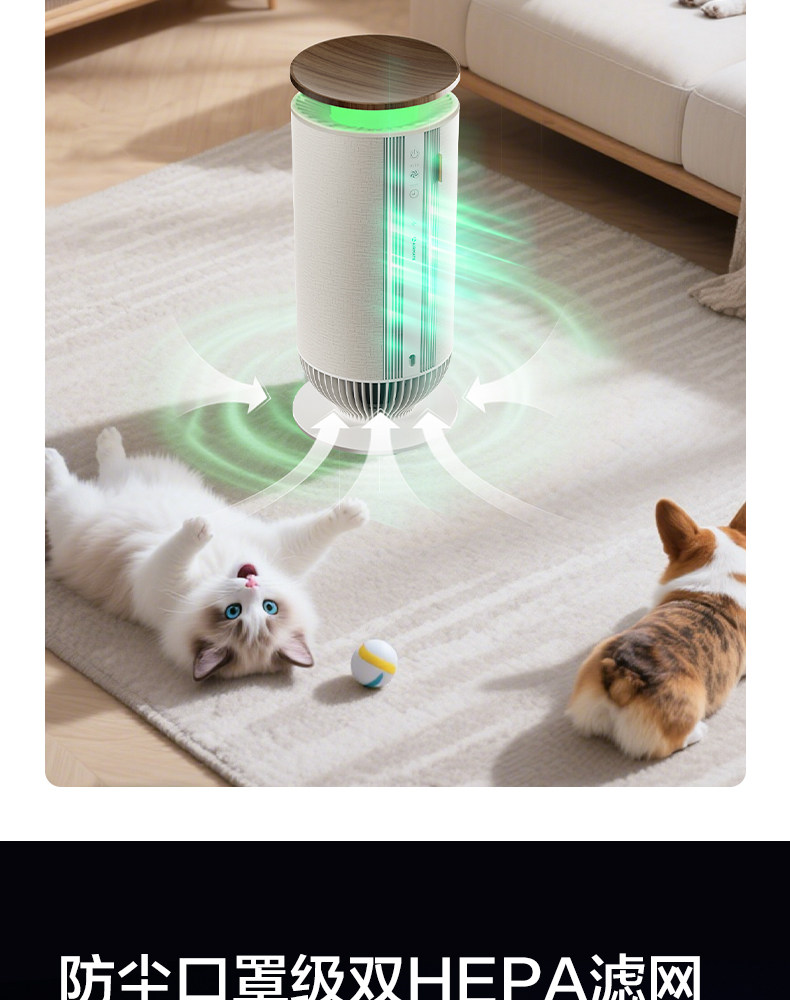 Emmet Emmet Pet Air Очиститель очищающий, стерилизовать и удалять чувствительные домохозяйственные волосы кошек и удалять плавучие волосы и удаляет аномальные запахи M01