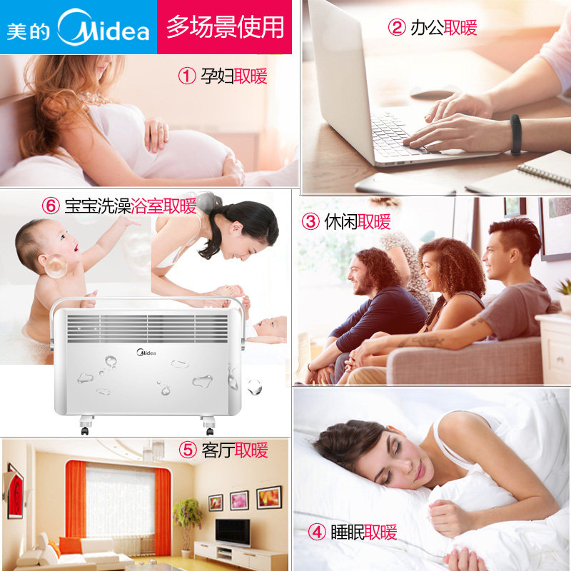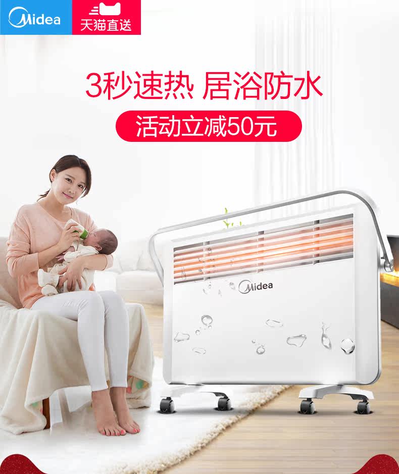 Обогреватели Midea Оборудование спальни Скорость Hot -To -Электрический нагрев ванной комнаты водонепроницаем