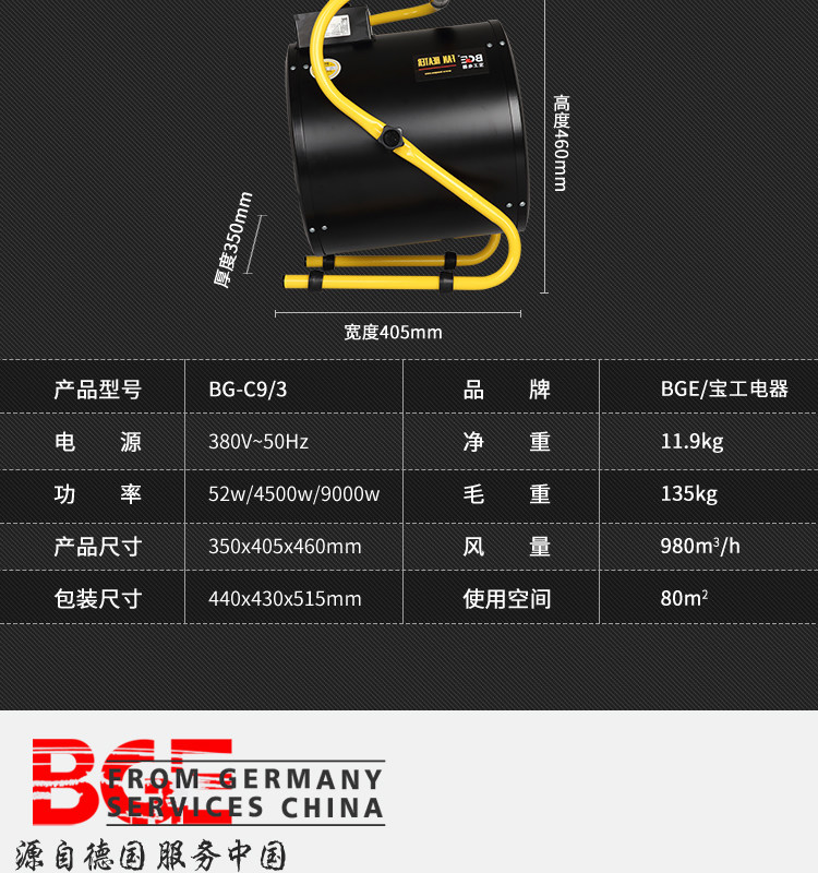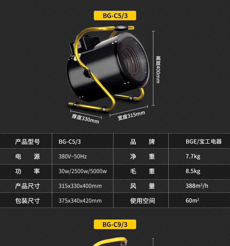 Baogong 380V5KW9KW Высокоэтапные нагреватели промышленных обогревателей Интернет -кафе Мастерская для сушки. Электрическое отопление