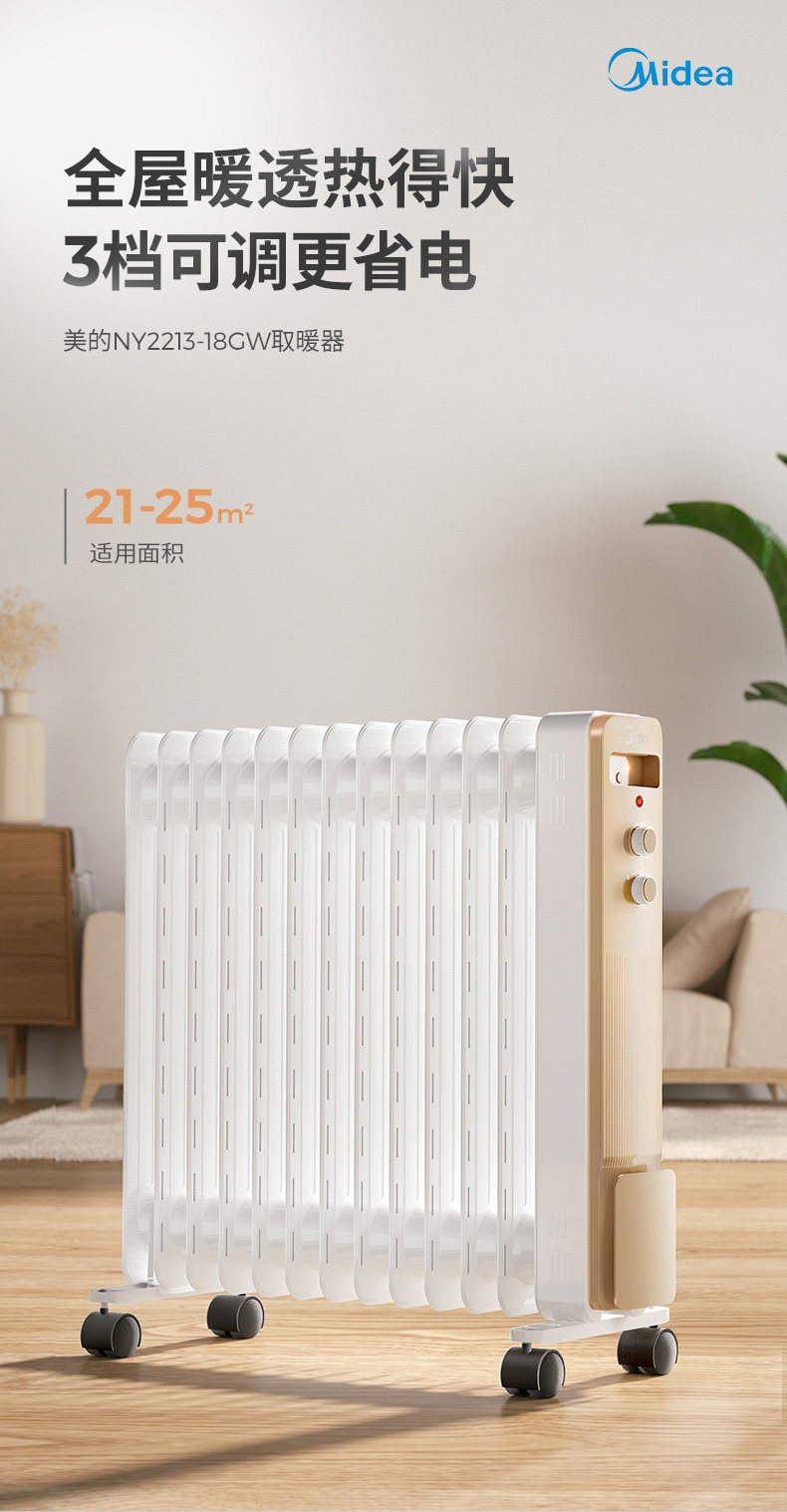 Midea масляный жестяной нагреватель домохозяйство Экономия энергии на кубики электрическое отопление тепловой тепло