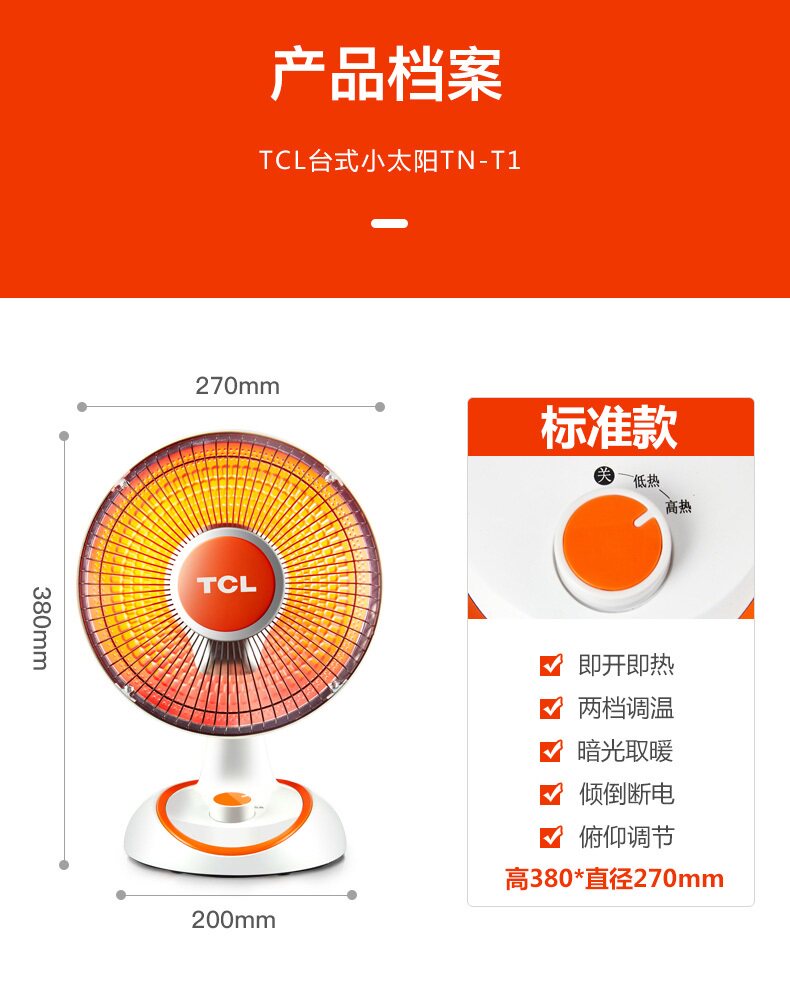 TCL 234 Маленькие солнечные обогреватели, предоставляющие отопление энергии огнестрельного оружия Электрическое отопление темно -светло -горячий горячий маленький нагреватель
