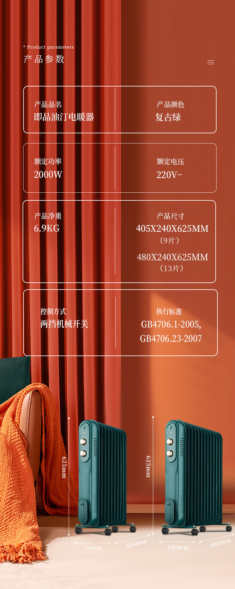 苏宁极物 X -масляная ретро -жаркое электрическое отопление воздуха нагревание воздуха