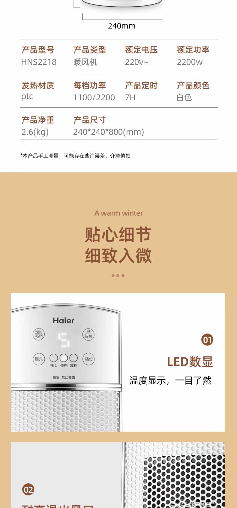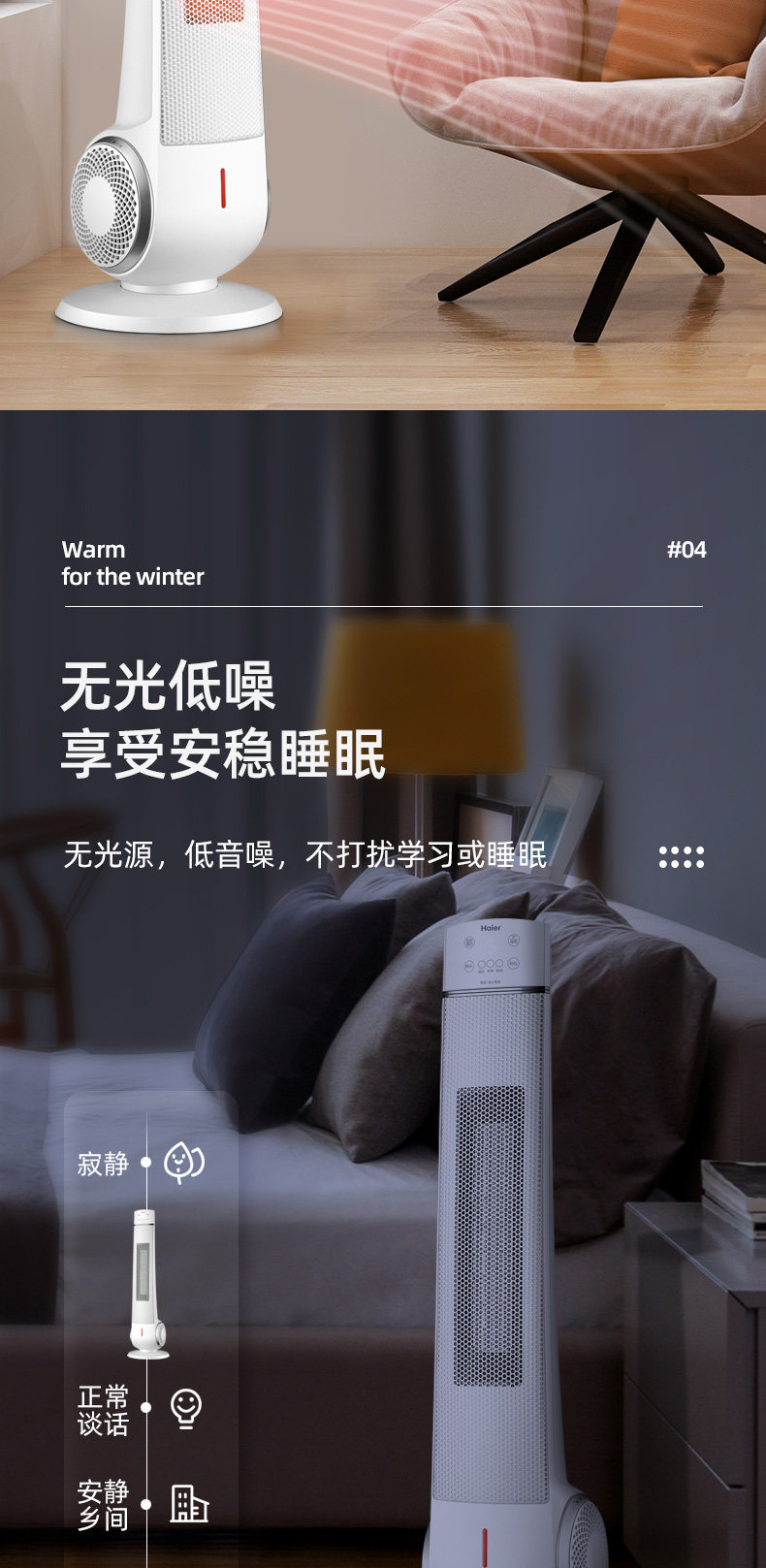 Haier Hearters Home Электрический вентилятор с отоплением Большой спальня в спальне.