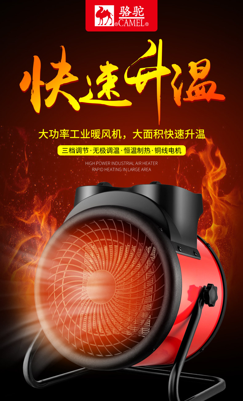 Camel Electric Heaters Промышленные обогреватели небольшая стальная пушка домашний вентилятор с горячим воздухом с высокой скоростью теплицы горячая и энергия