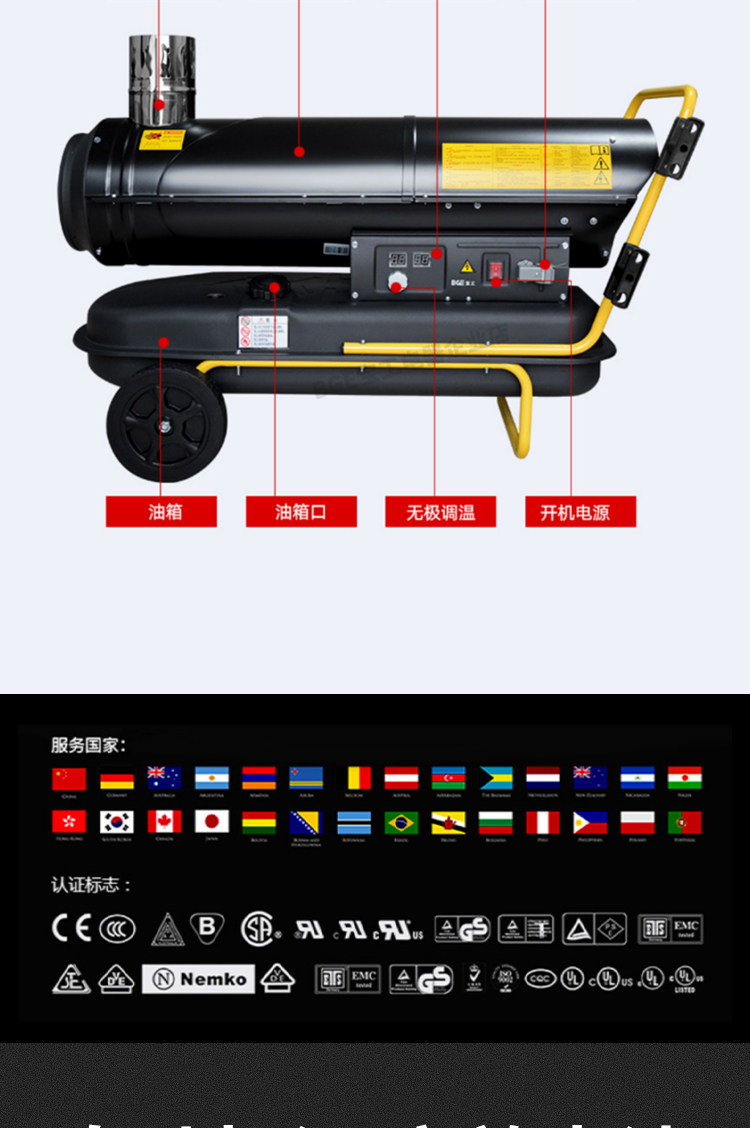 Bao Gong Масляный масляный разделитель Топливный нагреватель сушат мяч, чтобы нагреть вентилятор с горячим воздухом на обогревании между промышленной дизельной тепловой печью